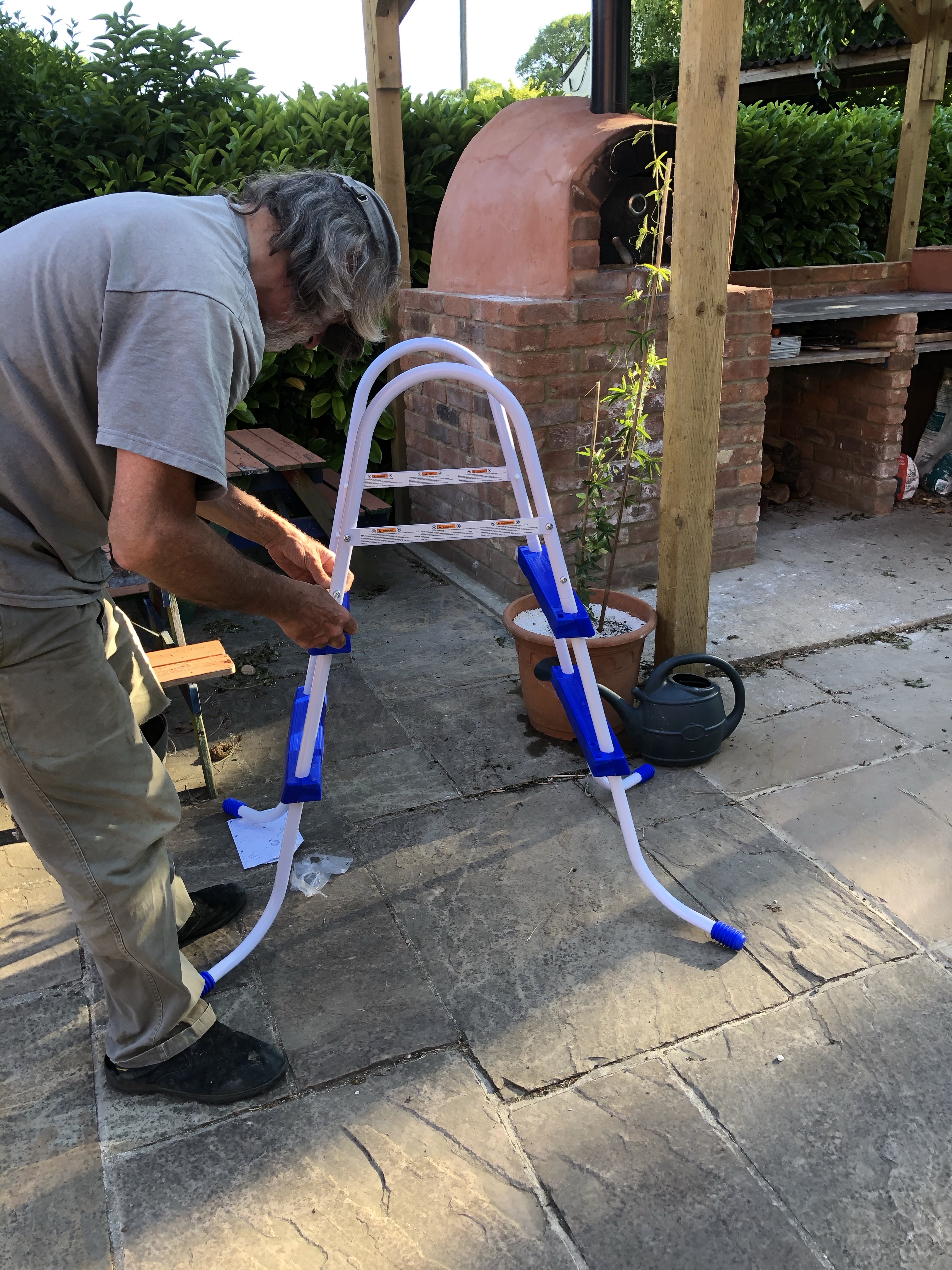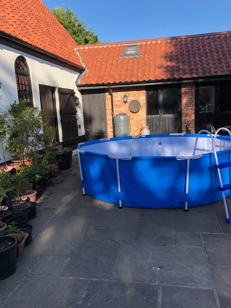 Grandson mentioned hot weather and paddling pools. How and why this was in the shed we can’t recall but J and I have spent the last two hours assembling this monstrosity so the weather better stay fine!