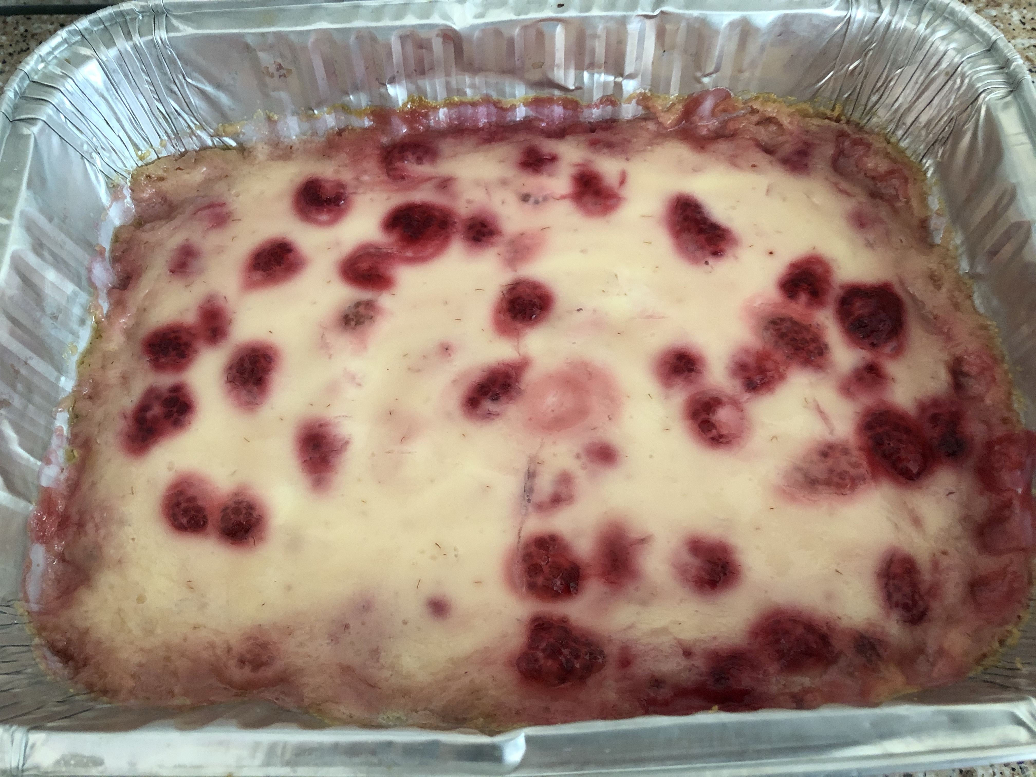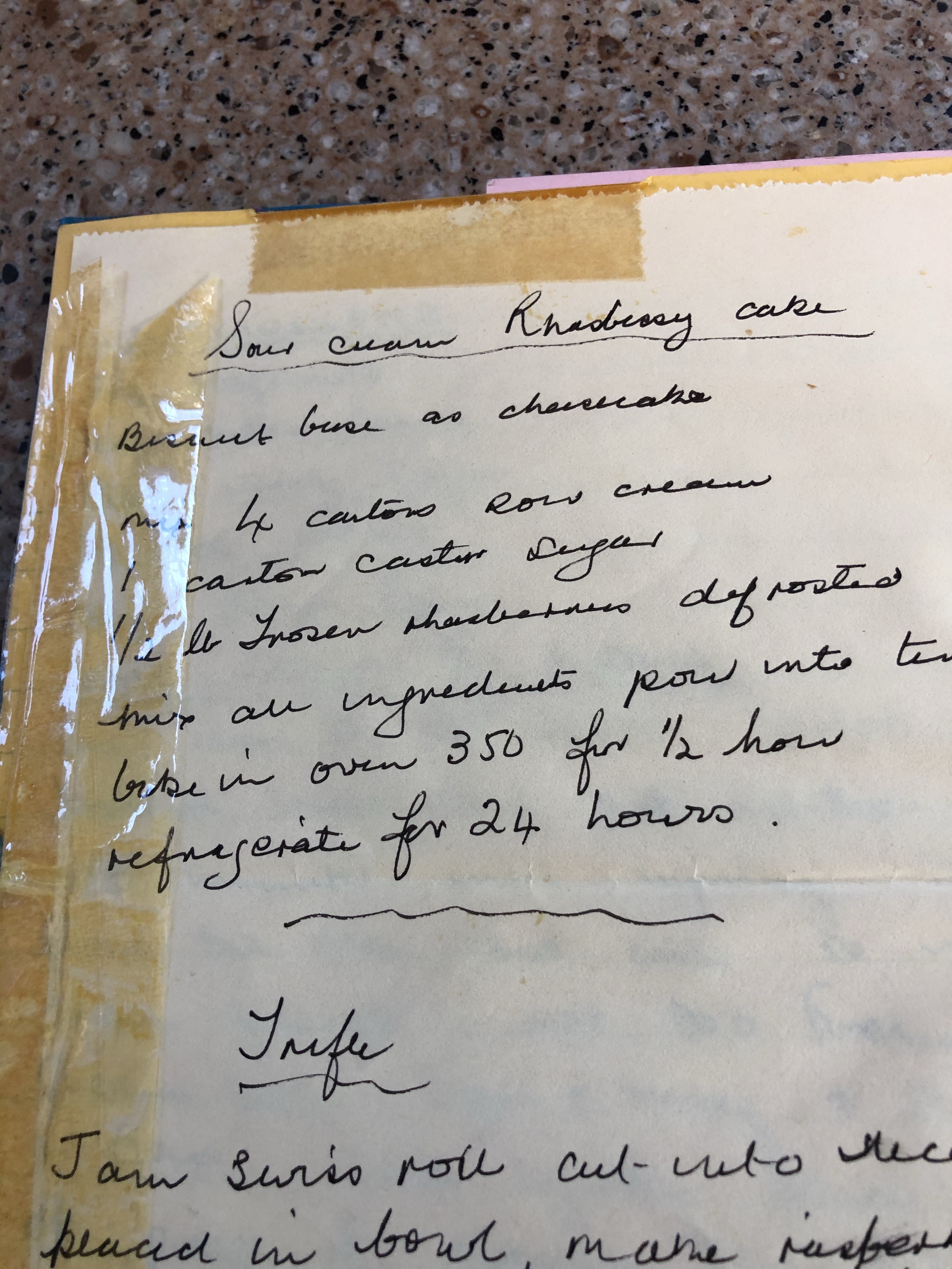 The tayberries from the freezer (last year’s crop) has gone into this sour cream cake. The recipe is in mum’s handwriting and was given to her by her old friend (? – there’s a story) Mavis and given to me by mum about 30 years ago. Tinned, drained berries can be substituted for frozen