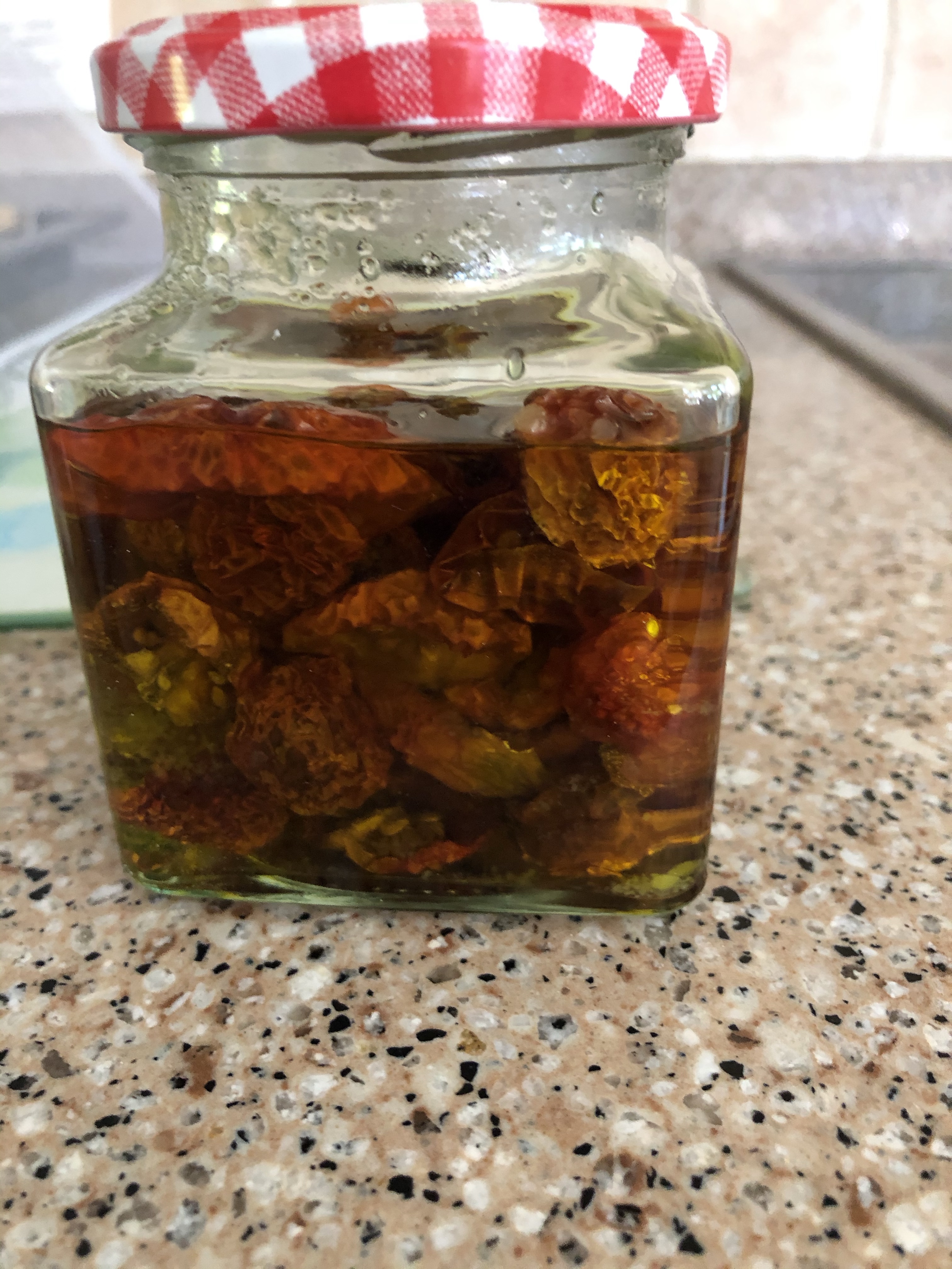 There’s a lettuce to wash and make into salad. I’m adding spring onions and these sun dried tomatoes that I bottled in oil last September and stored in the fridge