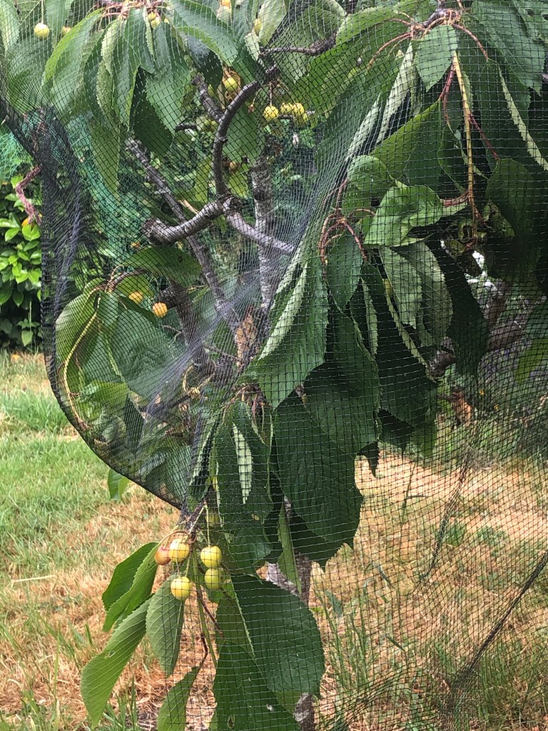 We net the cherry trees to stop the birds eating all the fruits. I saw a Robin inside the netting yesterday so it doesn’t always keep out the smaller birds.