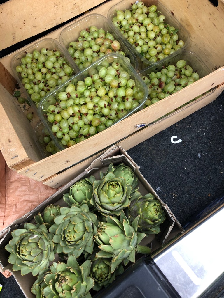 June 11, 2020 by gfreedman2013 Up with the lark….. more like “up with cuckoo”, who taunts me by calling all day and all evening but never lets me get a sighting I got outside before the expected downpour and filled seven punnets with gooseberries. Just picked but now needing to be sorted Leaves removed and fruit towelled dry Into the car with a dozen artichokes to take to the Black Cat farm shop Share this: Share on X (Opens in new window) X Share on Facebook (Opens in new window) Facebook Like Loading... Related
