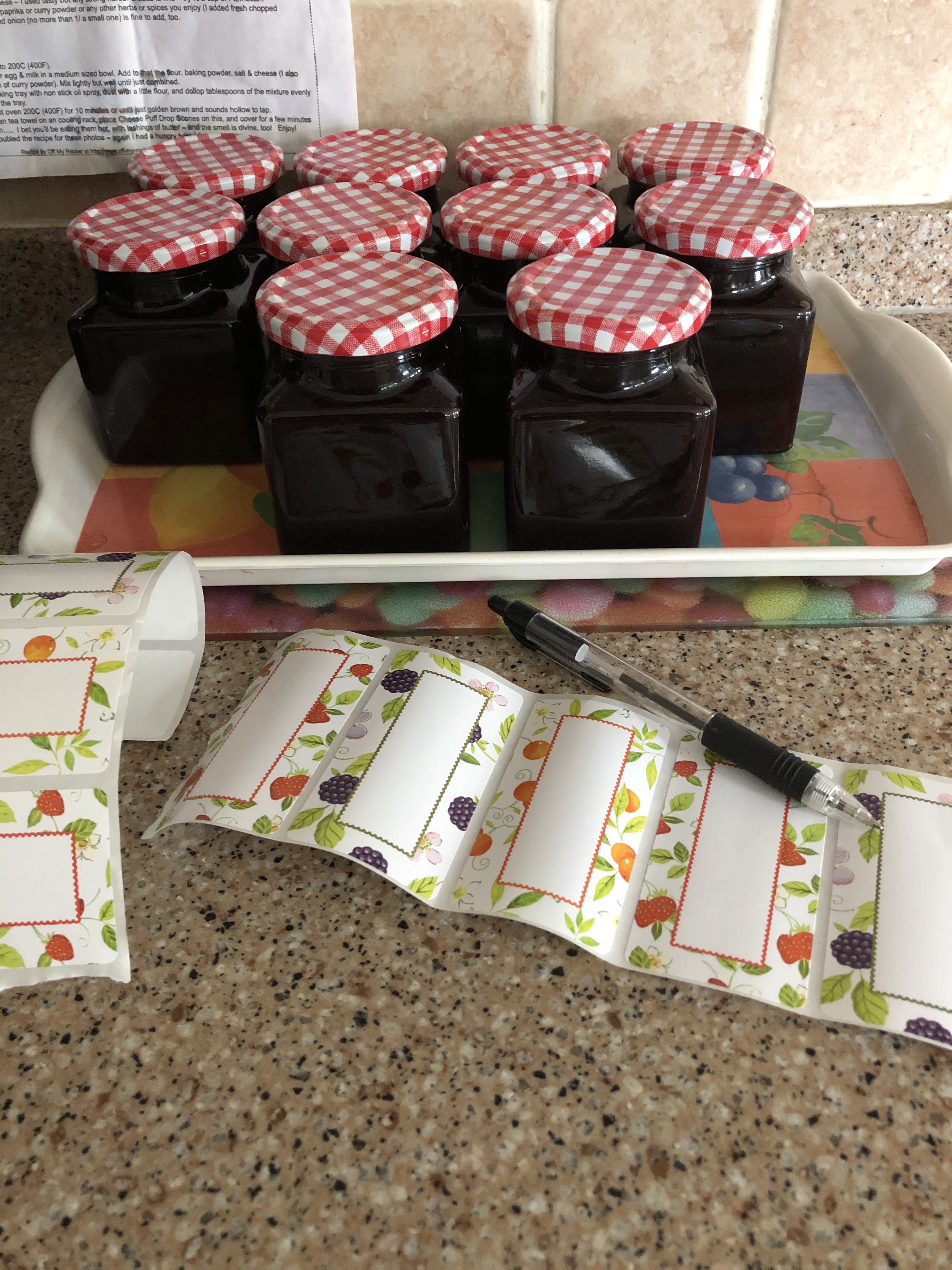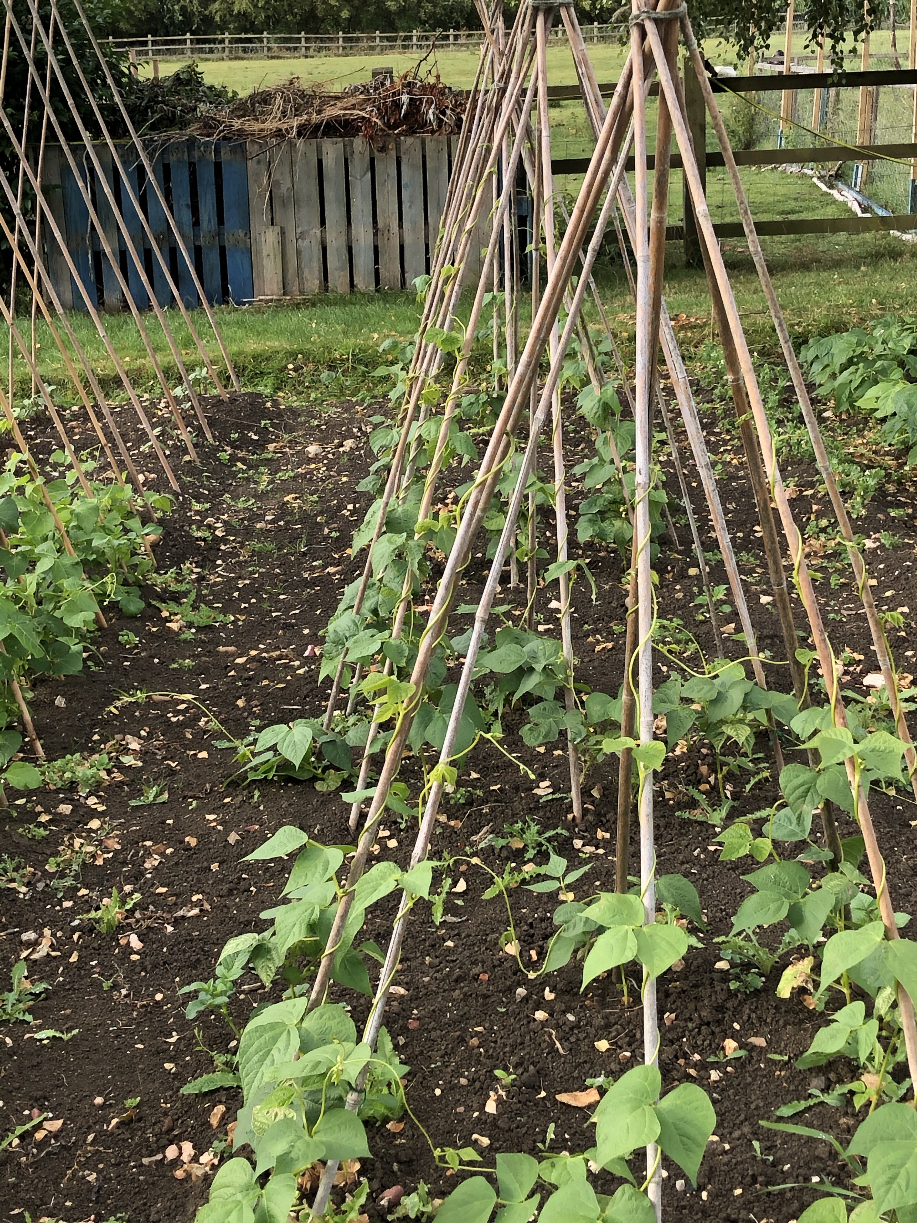 There are still pounds of gooseberries to pick – not a task I relish. Also black currants, red and white currants, raspberries and tayberries. My favourite are the black currants and they set well, last night, when I made jam.