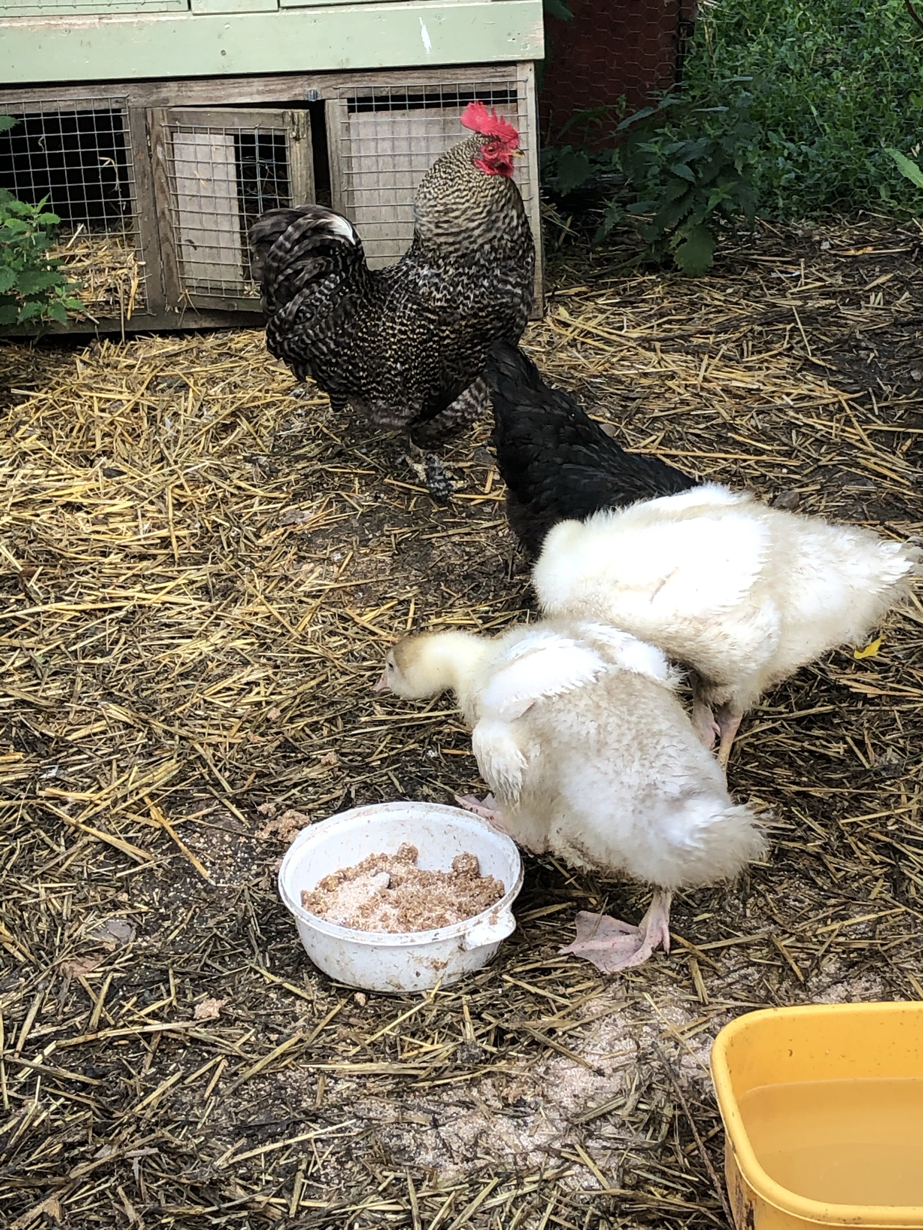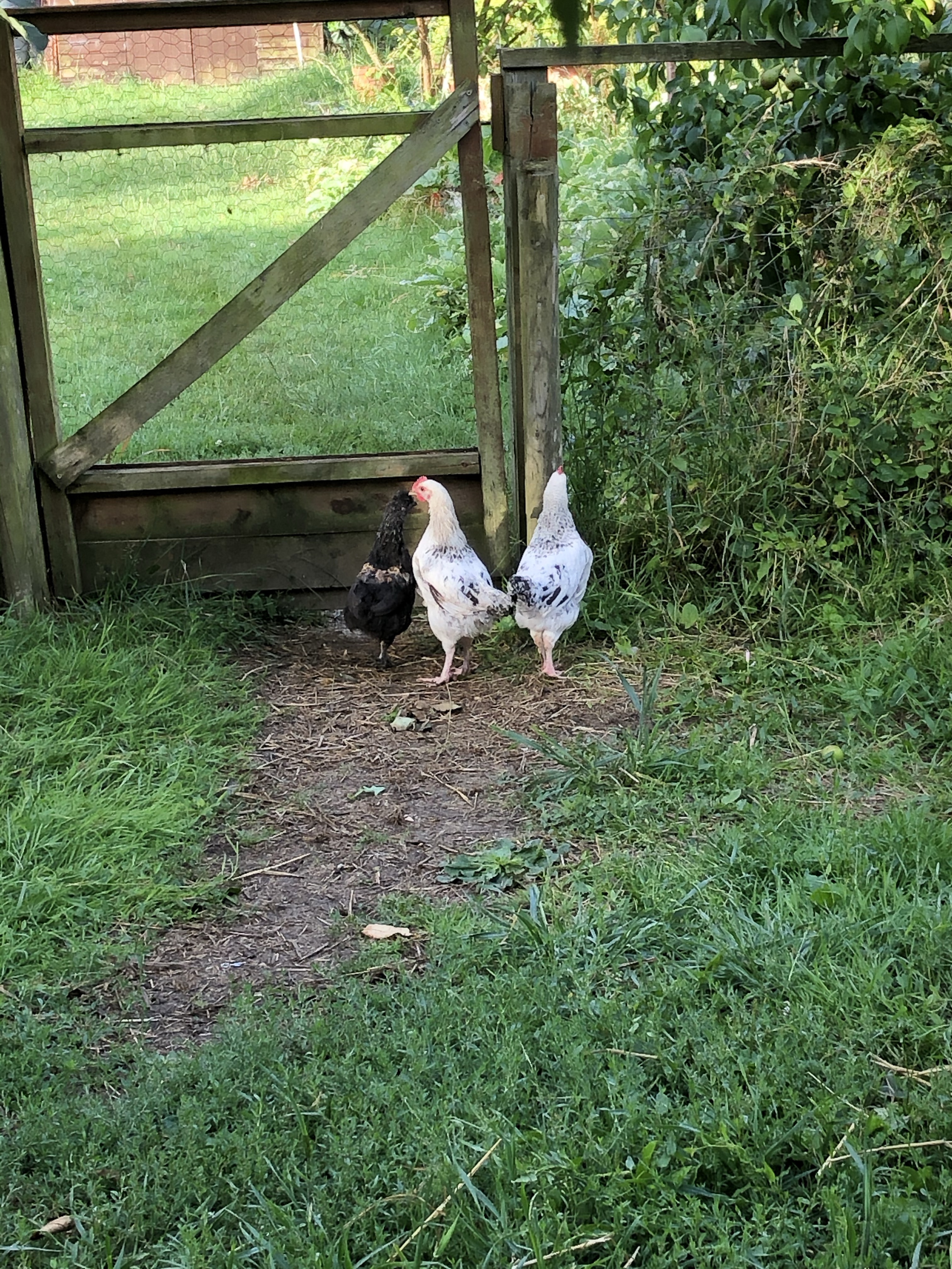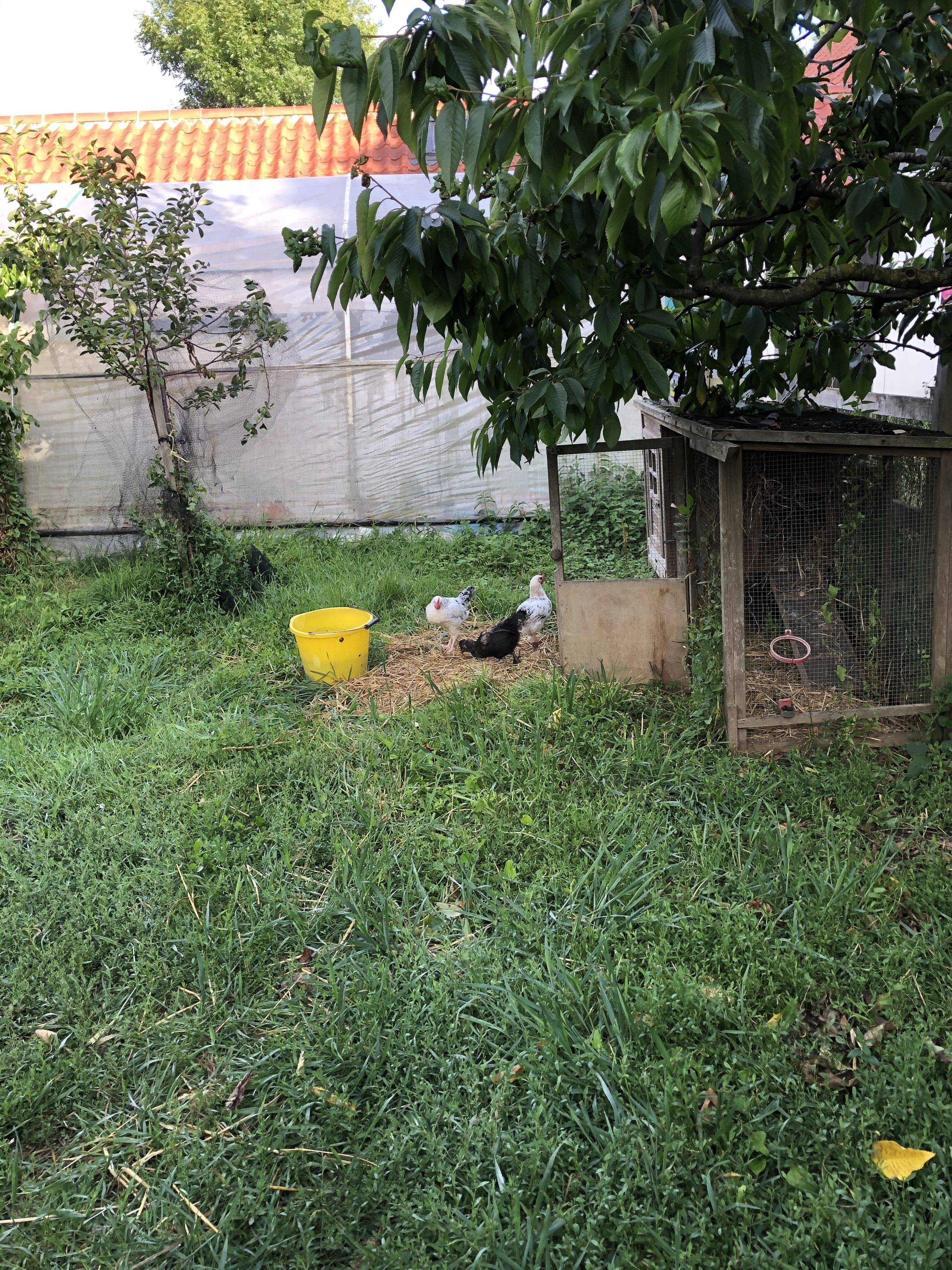 The three teenage birds were terrified of the goslings and their protective mother. They would hardly leave the hen house. Yesterday morning I moved them to a new run. Their own house and their own space