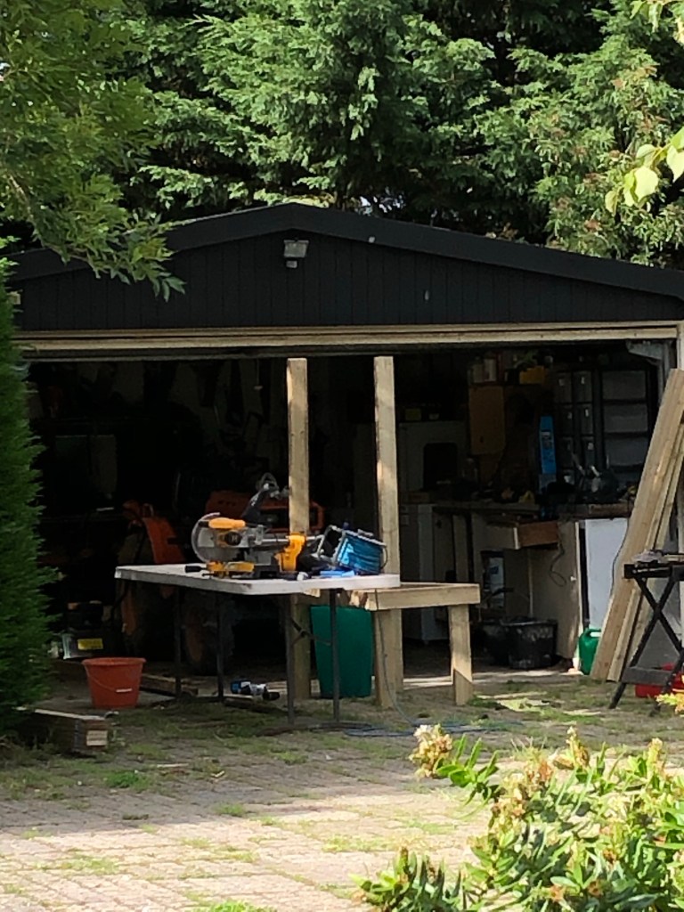 July 17, 2020 by gfreedman2013 Summer weather for one day Mabel and I stop weeding (me, actually not Mabel) and sit in companionable silence under the pergola Jeremy has had many interruptions today but, nevertheless, he is making progress with building a goat milking platform. Share this: Share on X (Opens in new window) X Share on Facebook (Opens in new window) Facebook Like Loading... Related