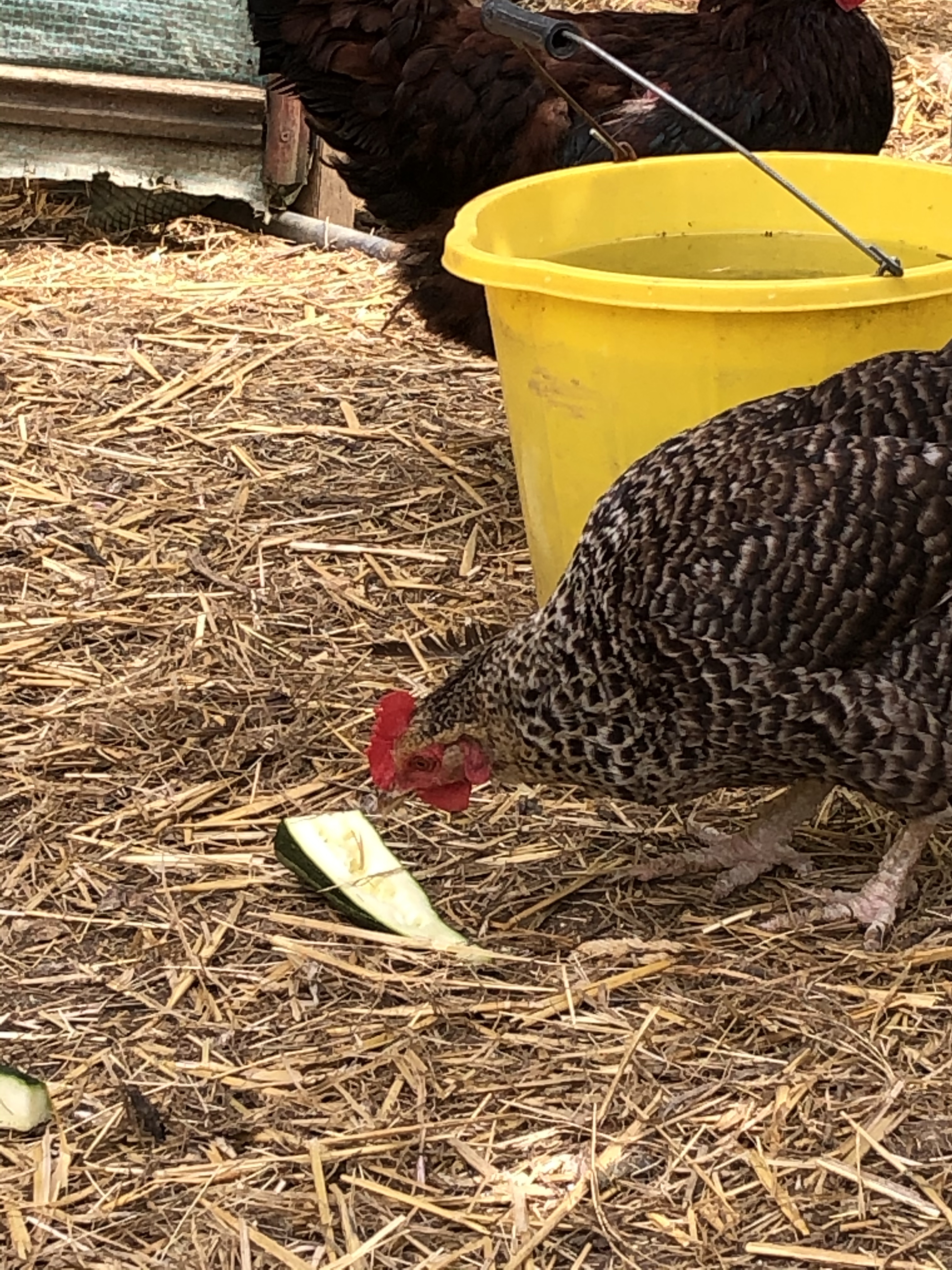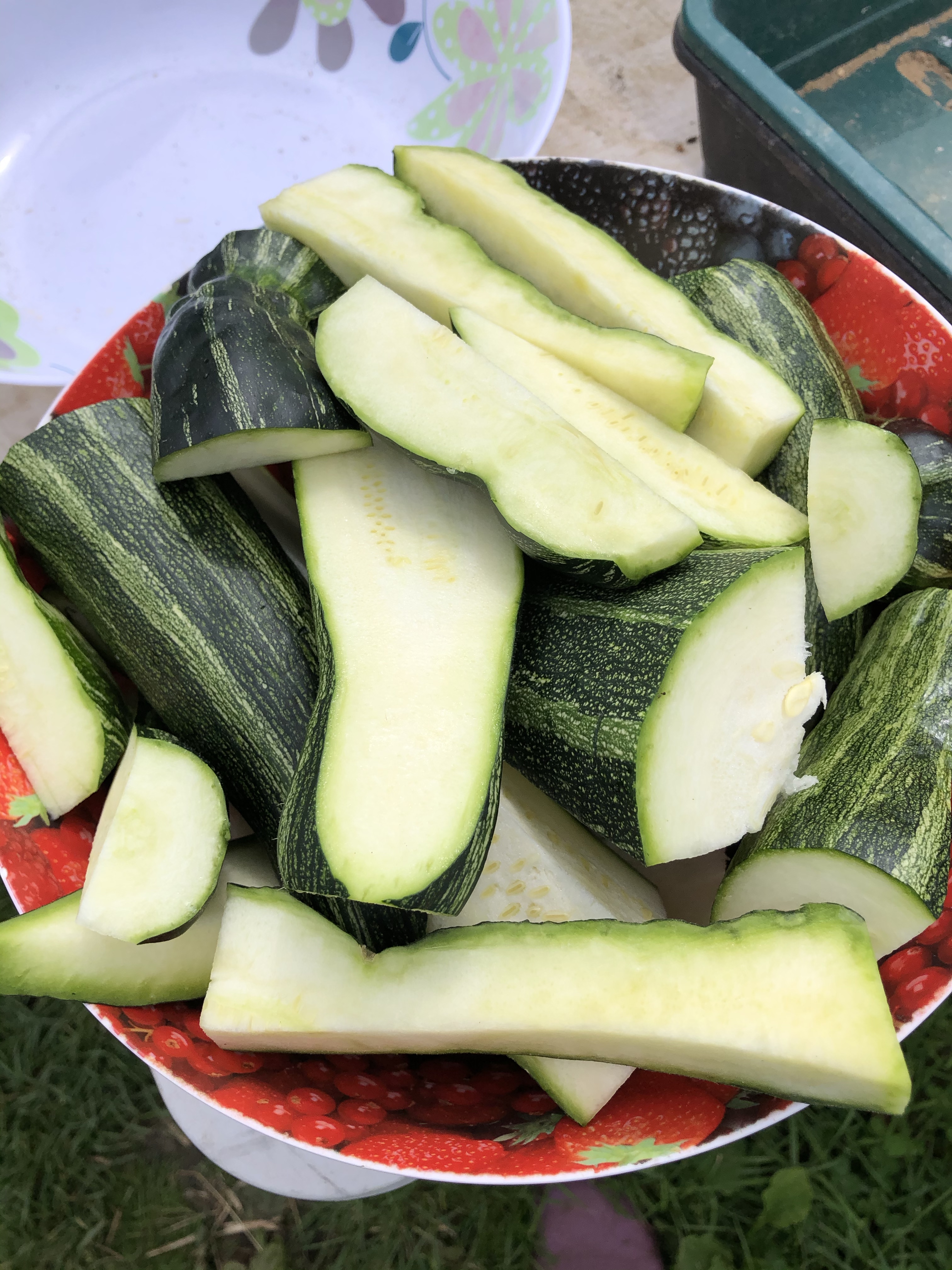 We have more courgettes than we can consume. Today I cut up a few to give to the chooks. They love to peck and pick at the courgette flesh and seeds