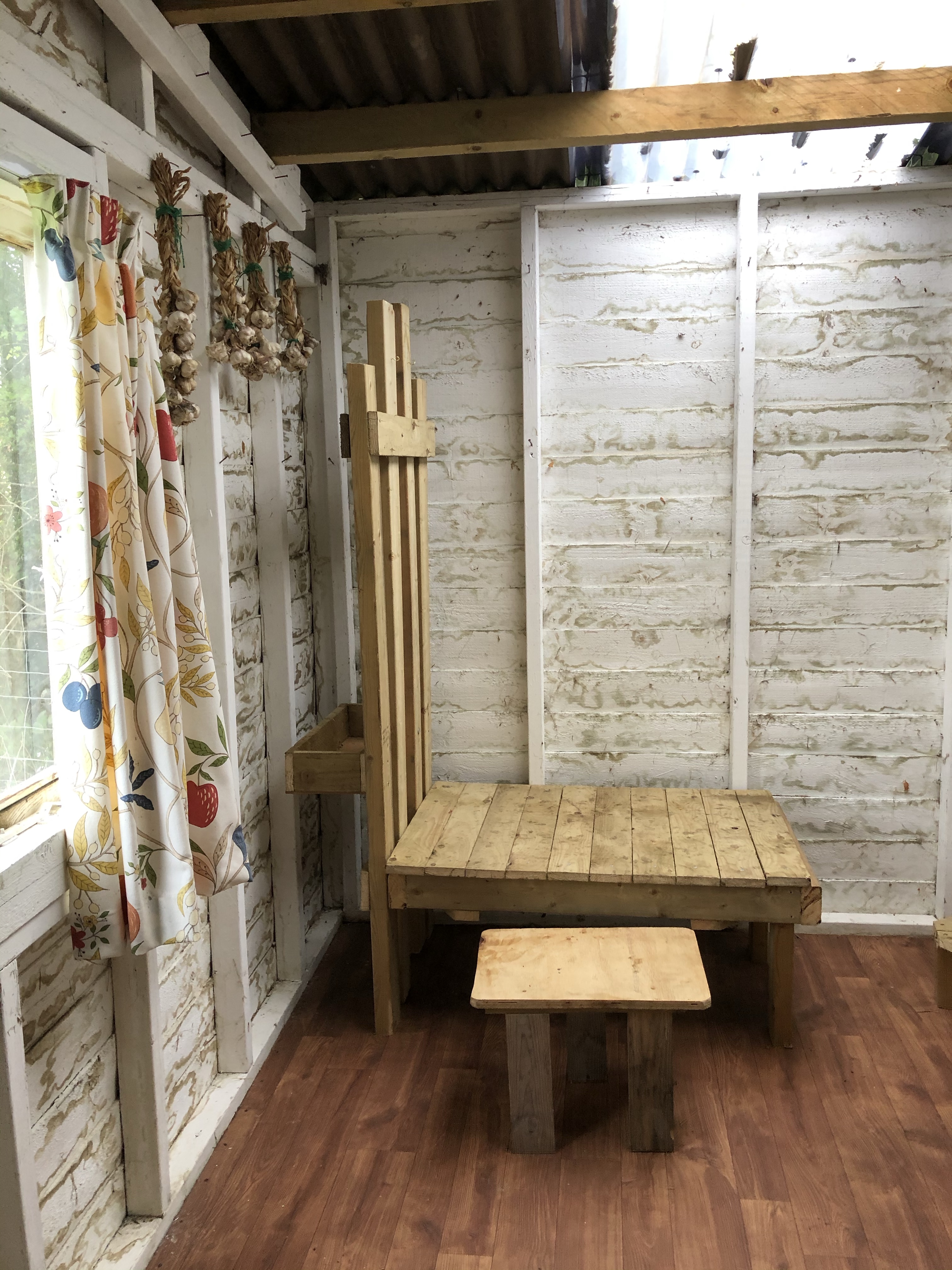 We moved the goat milking platform into the adjacent barn and rearranged the furniture in there. It also needed a jolly good clean (as did I when I had finished!).