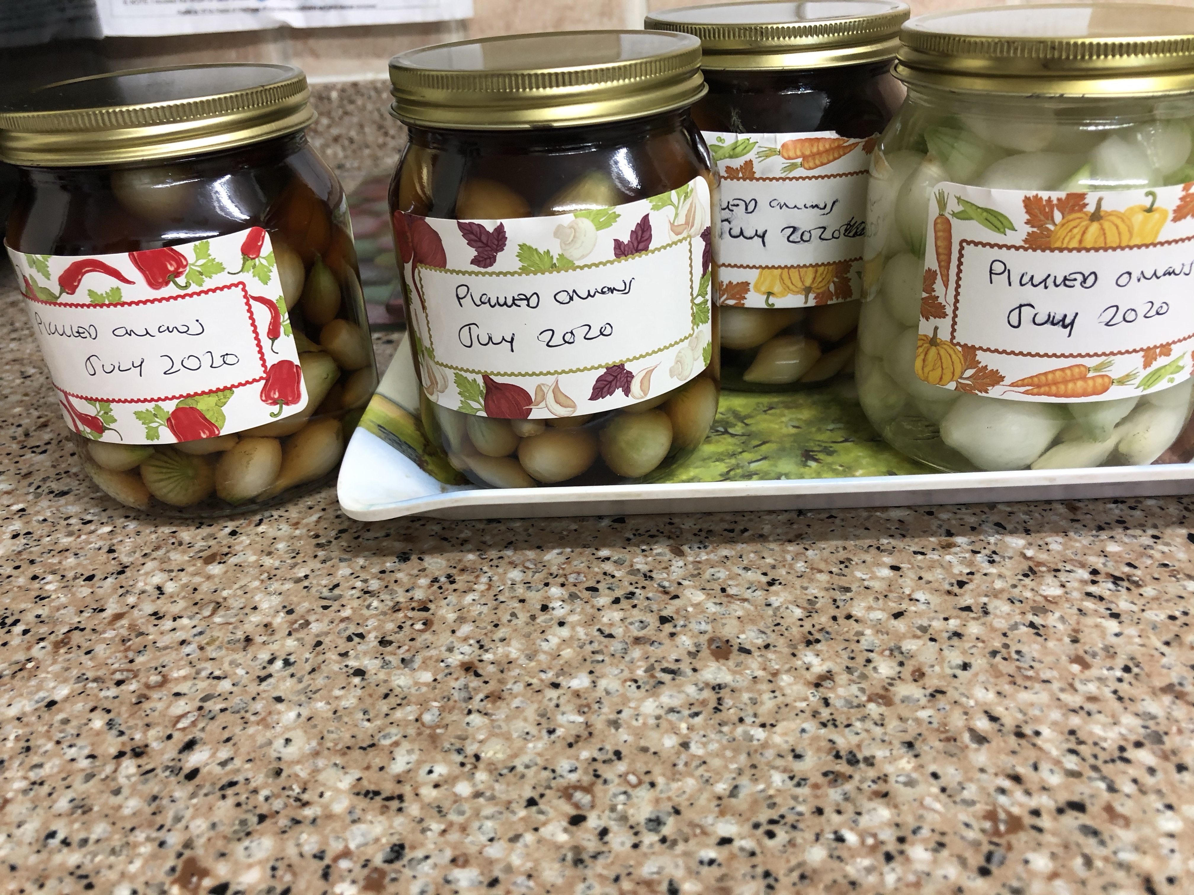 Then packed in jars and covered in vinegar, sealed and labelled. Hands off until late August!