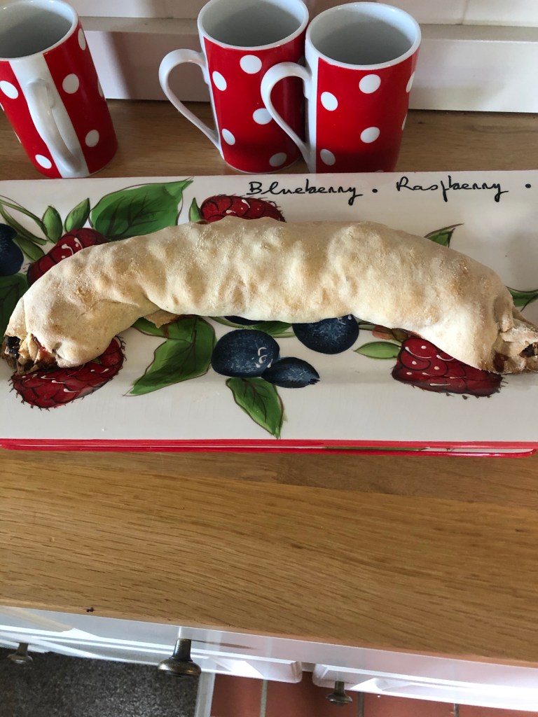 July 28, 2020 by gfreedman2013 Special friends coming for coffee this morning First apple strudel of the year using windfall apples and raspberry jam Share this: Share on X (Opens in new window) X Share on Facebook (Opens in new window) Facebook Like Loading... Related
