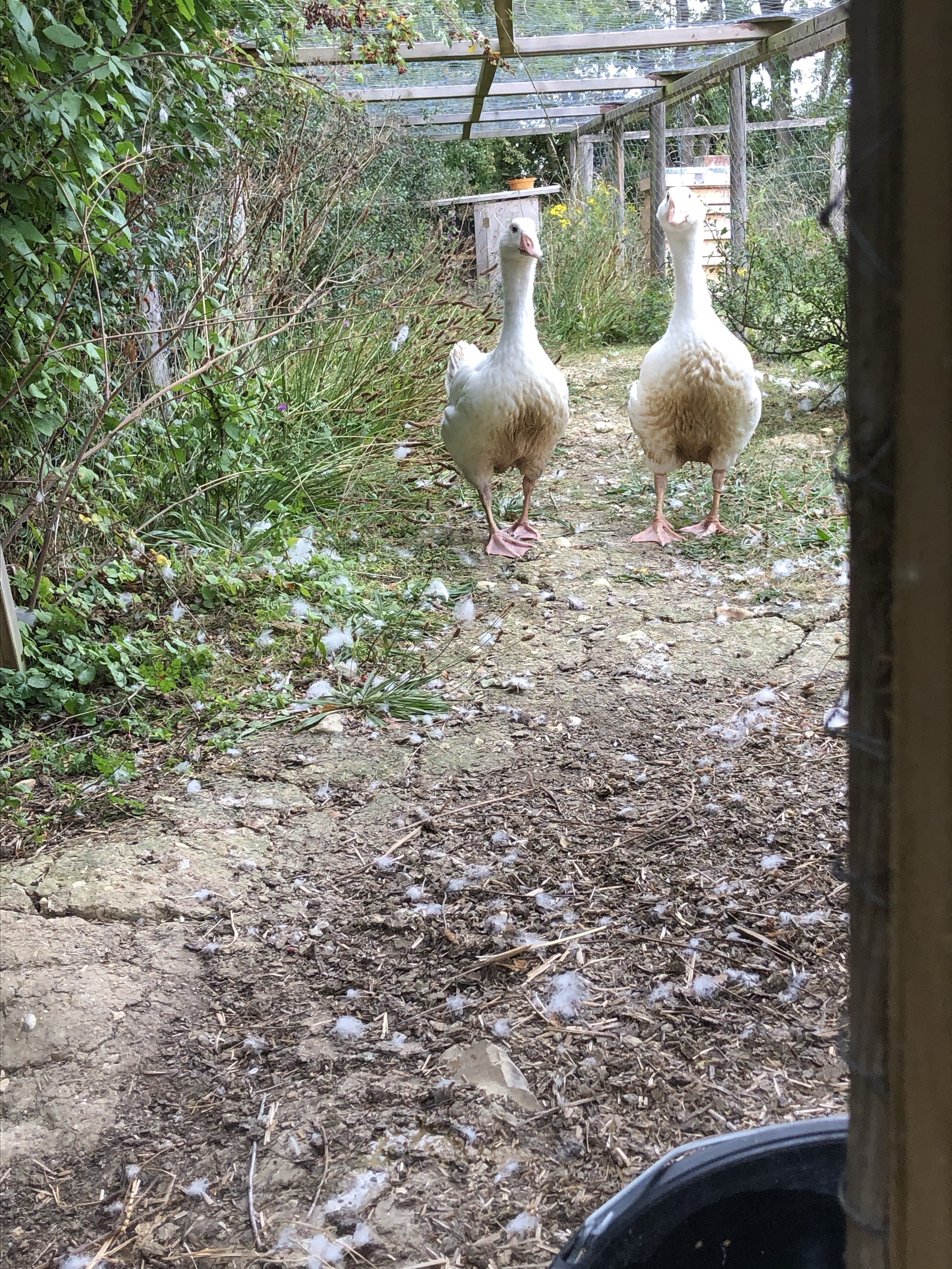 The goslings are ready to go down to live at the pond. They will stick together as they try to find their place in the flock.
