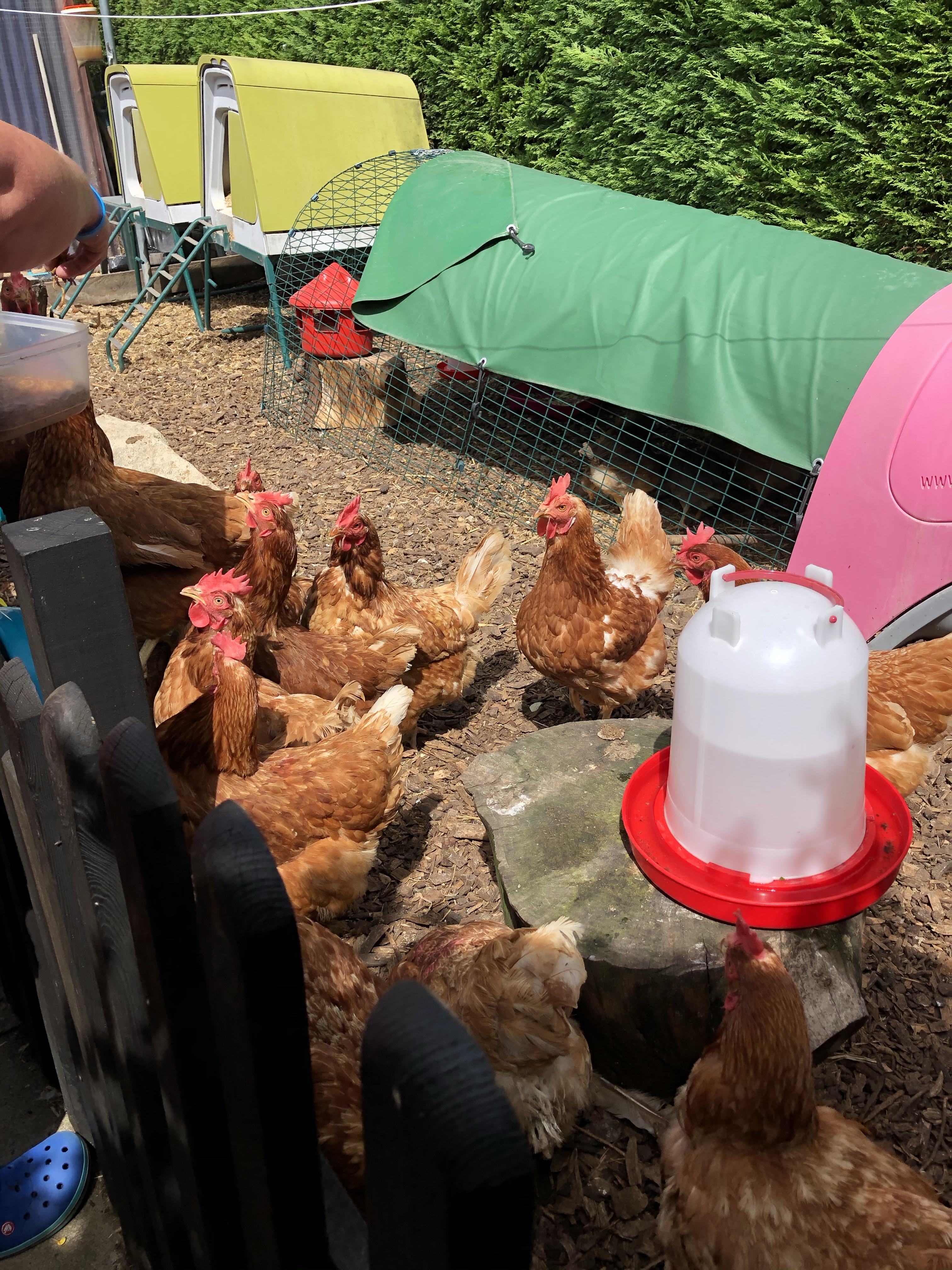 I put a bucket of water and some food near the back gate in case the big birds won’t let them feed from the communal container. We’ll keep an eye on the situation.