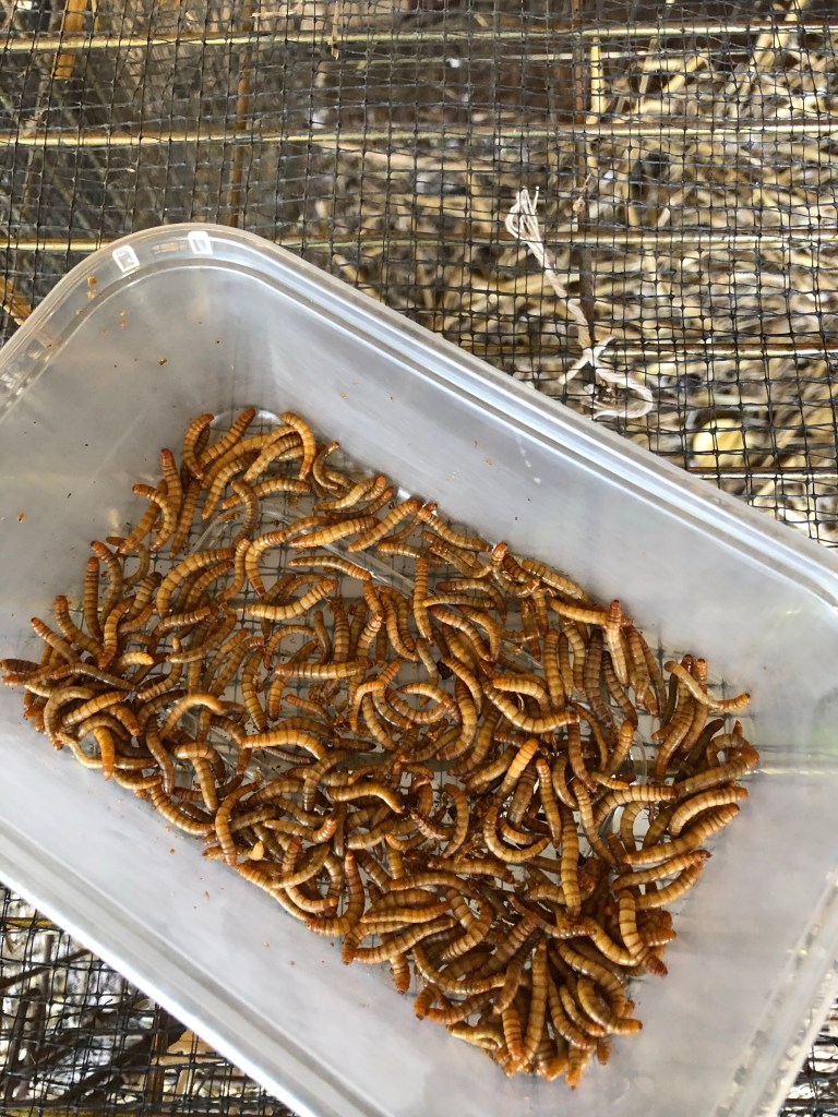 Then it was off to a nearby village to collect a new pc from our technical wizard at Pcupgrade- who helps us keep our tech up and running. He and his wife also keep chickens and they feed them mealworm treats.