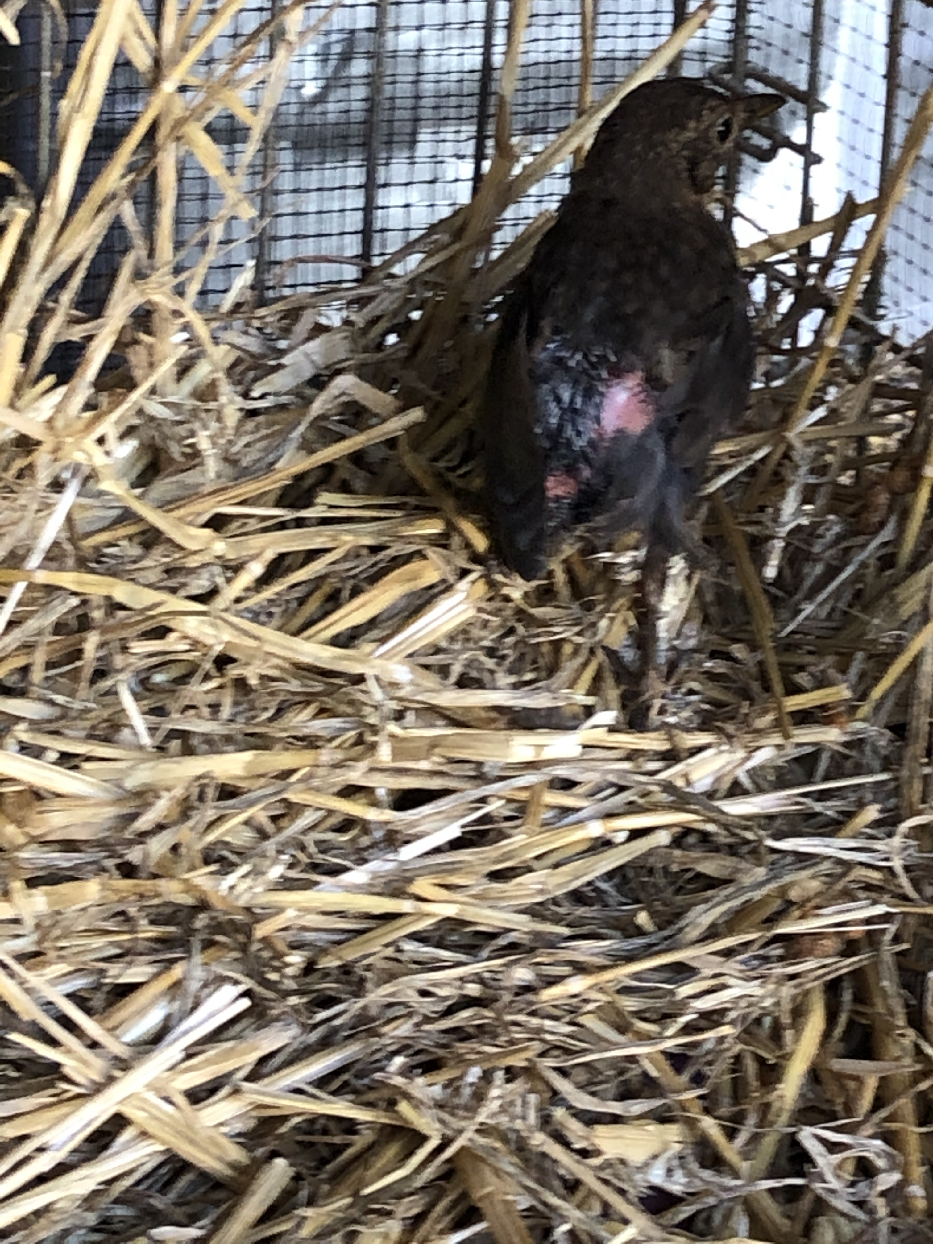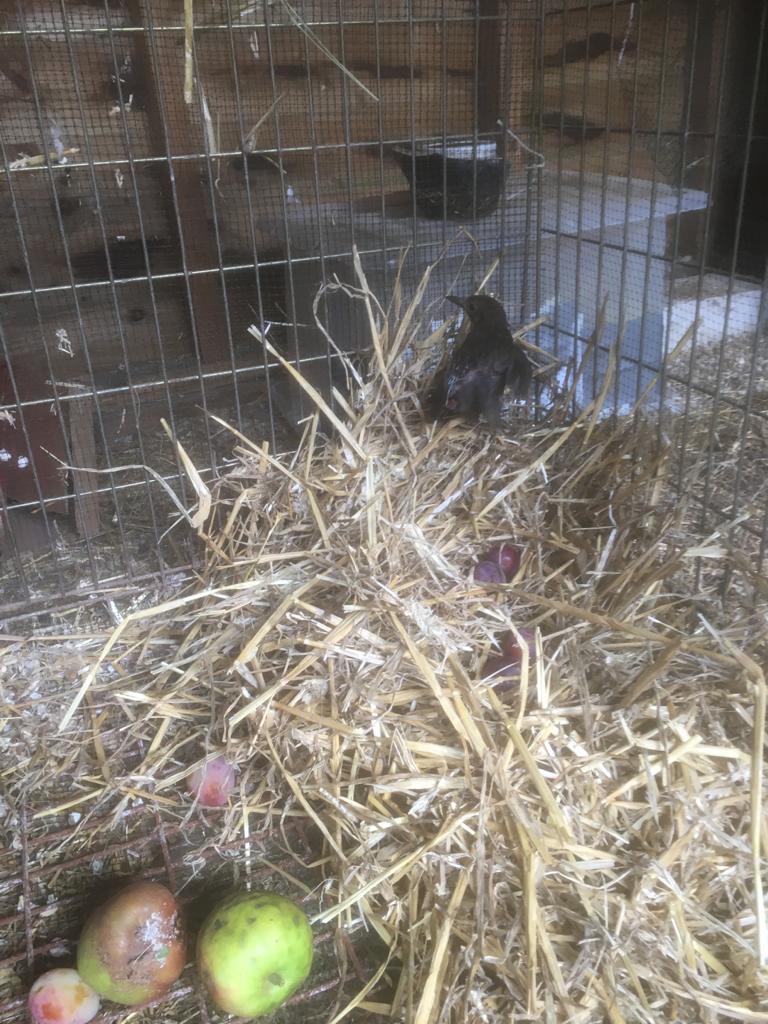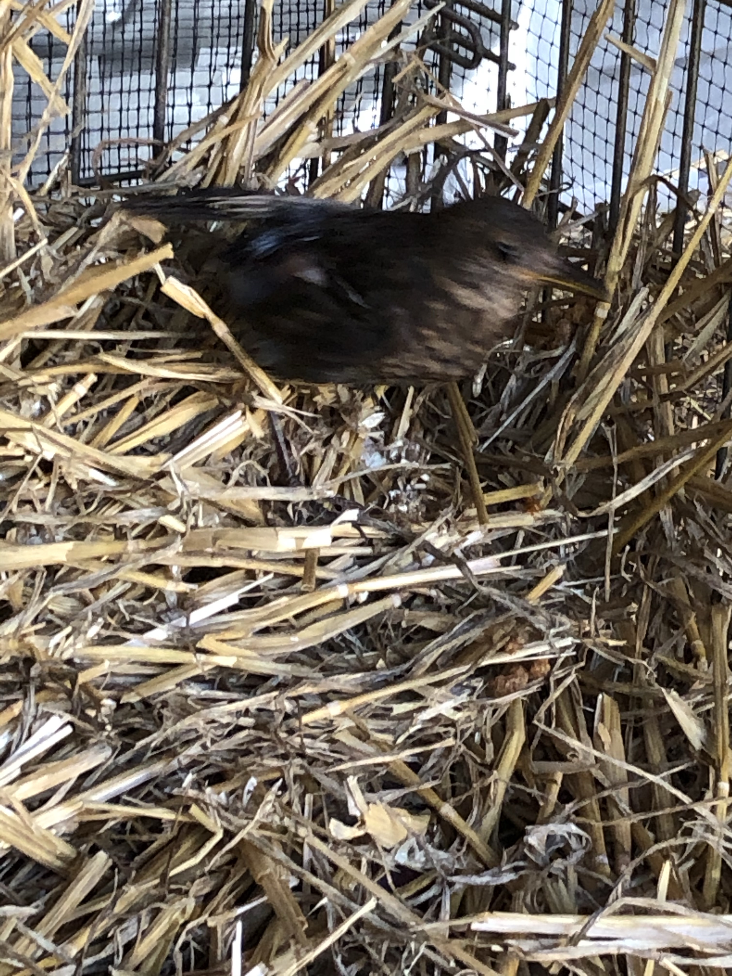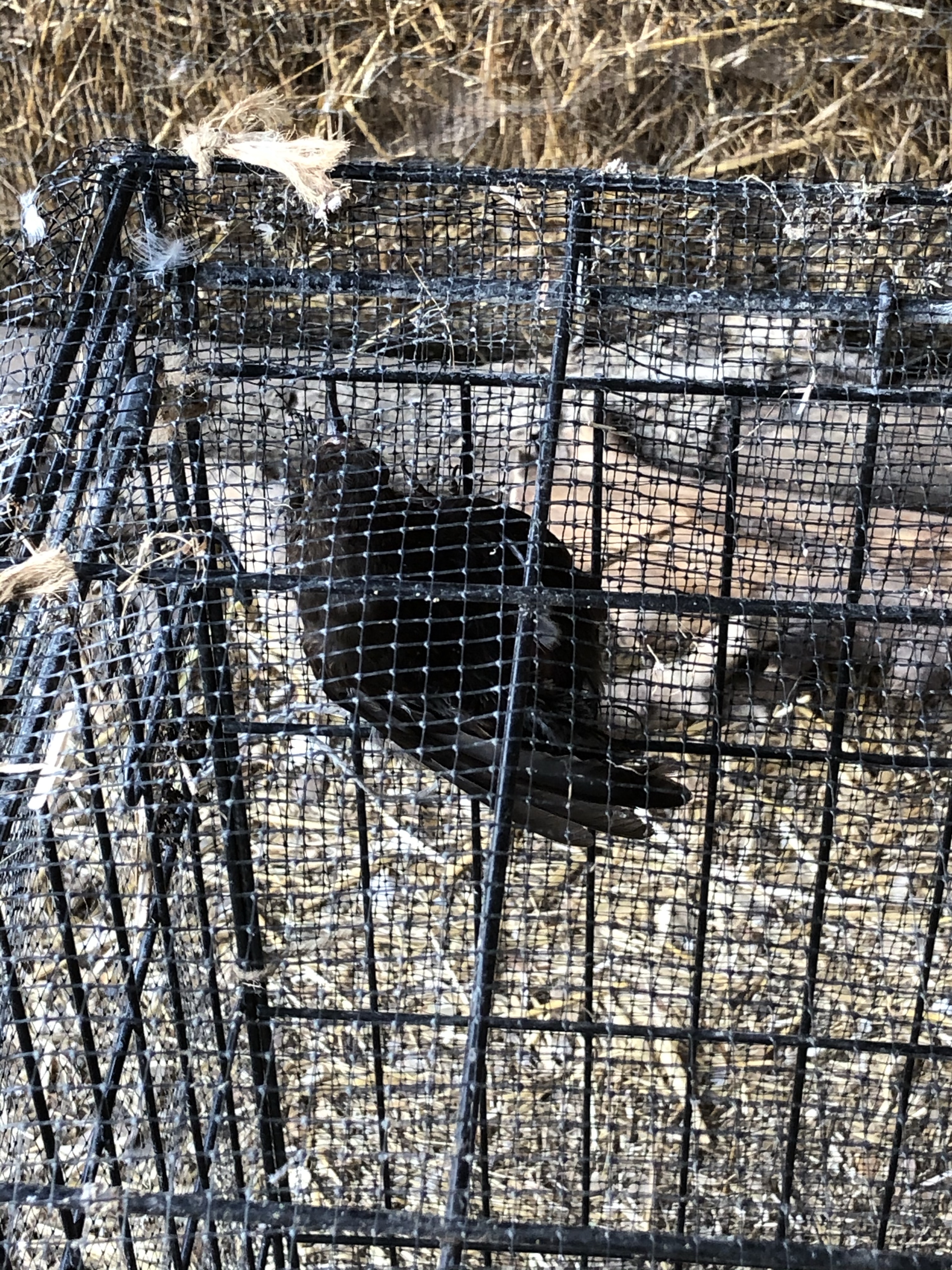 We then took the bird into the empty quail barn and put it in a cage with some straw, bird food and water.