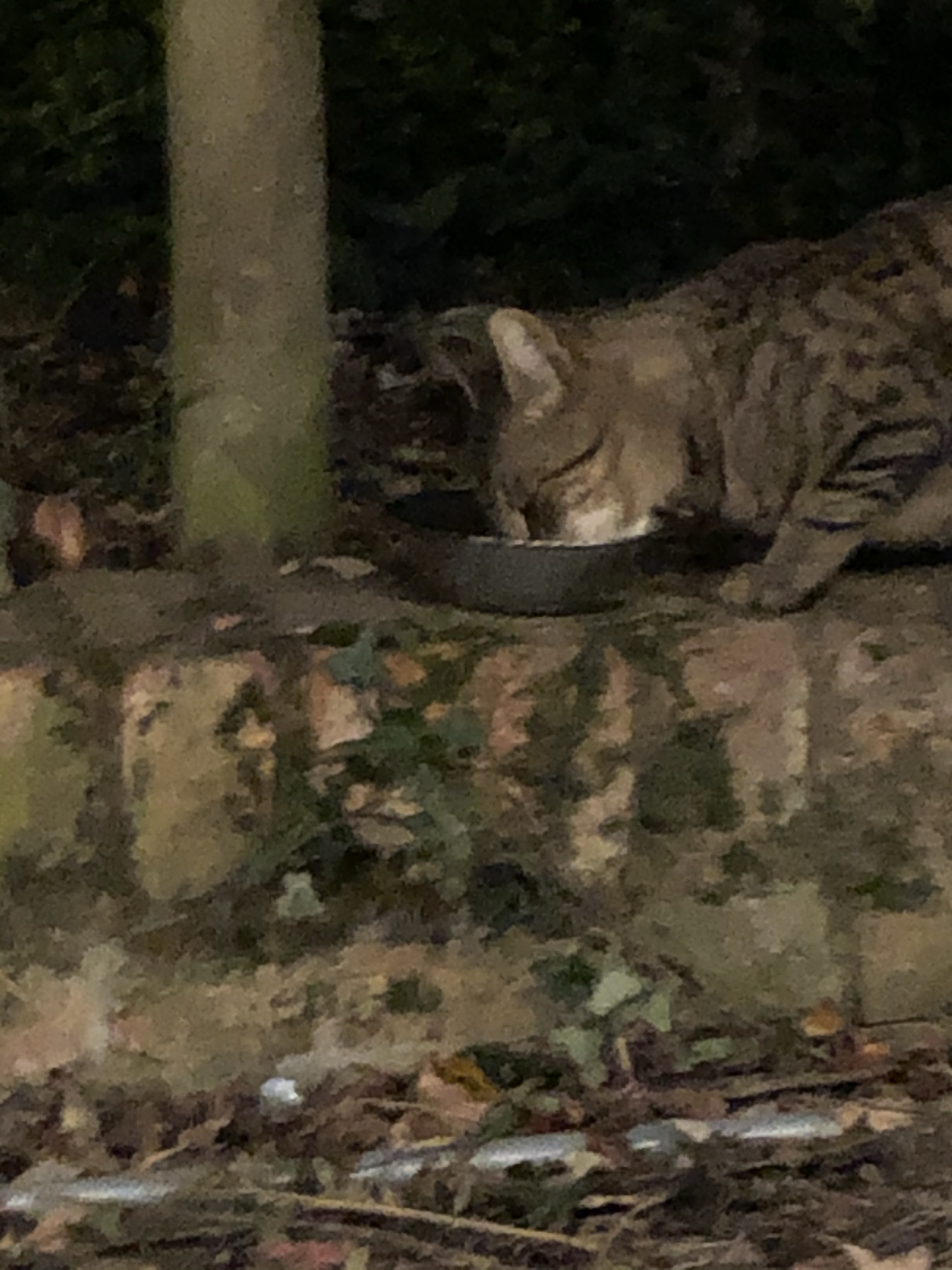 The other day a local friend saw a post on the facebook page of the neighbouring village. A cat had been seen, regularly in a garden (a home where 11 lucky cats already reside) and was being fed. The cat lovers wondered if anyone had lost a tabby. My friend thought that the tabby looked like our lost Josie and she put me in contact with the cat people. Tonight, as the sun was setting, I sat opposite the feeding place where the tabby usually appeared. Sure enough a mewling announced her arrival and the cat people put out a dish of food. I sat in the doorway and took some photographs. I crawled closer and the cat stayed it’s ground. I called, “Josie”, but she didn’t respond.