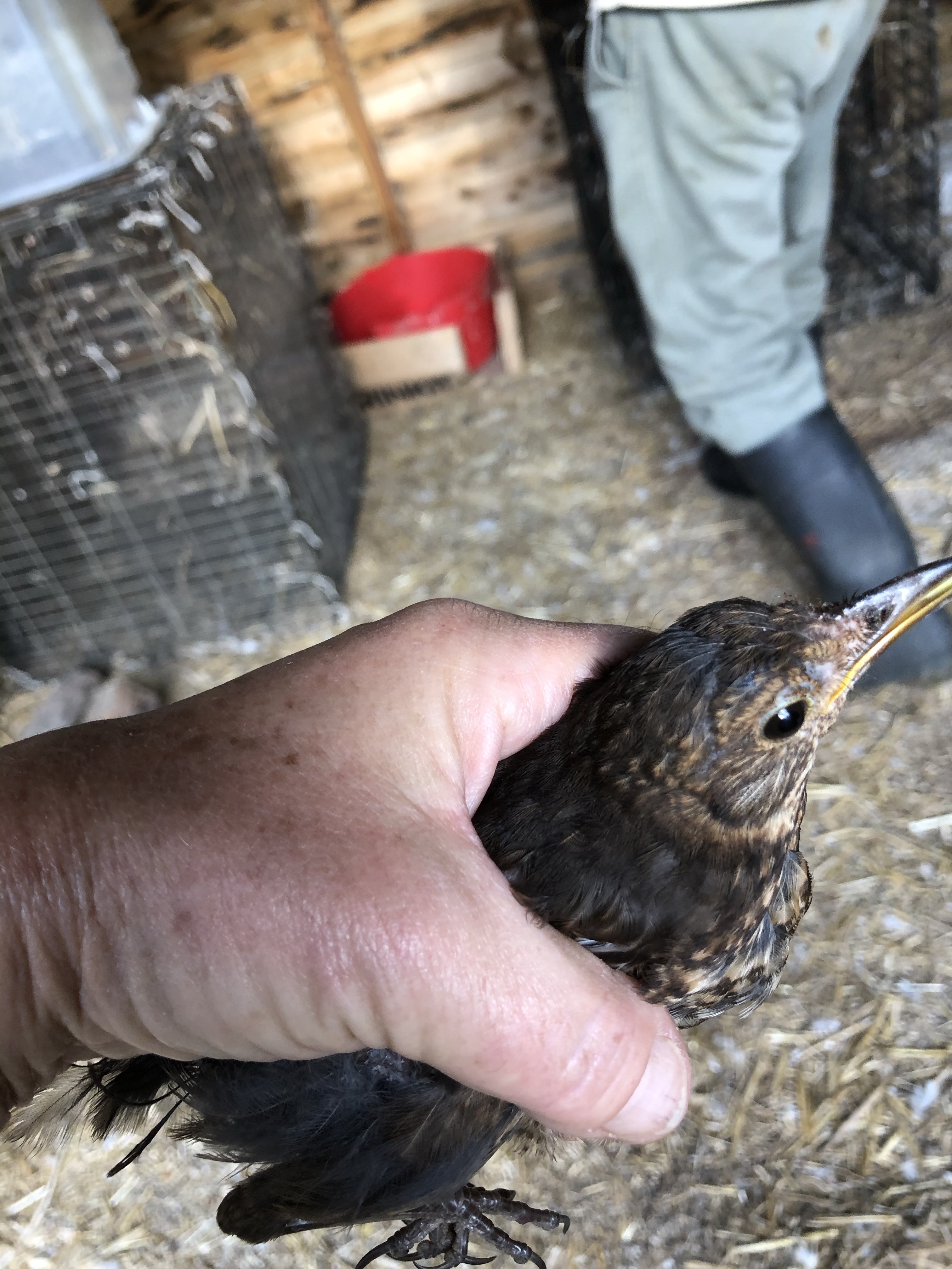 This evening the bird was hopping around the vegetable patches that we were weeding (the cats were hanging out with us and I didn’t fancy a bloodbath amongst the parsnips!). We chased the bird into one of the chicken houses and I picked it up.