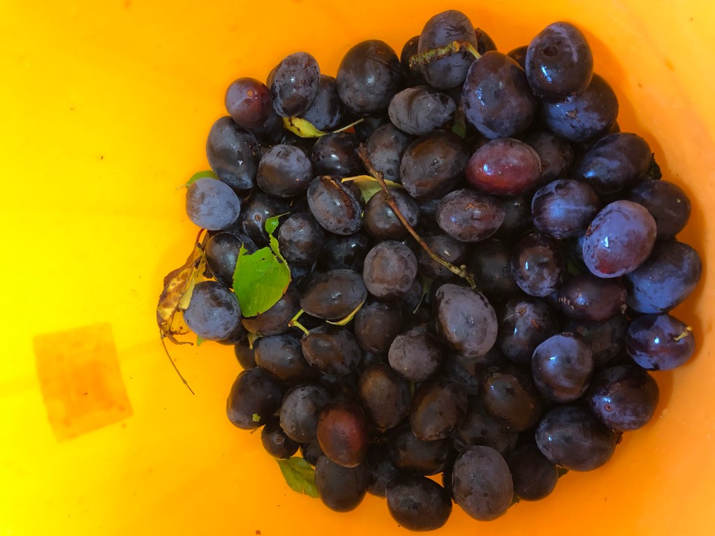 Jeremy climbed the tall ladder this morning and picked every damson he could reach. Just enough for six pots of jam.
