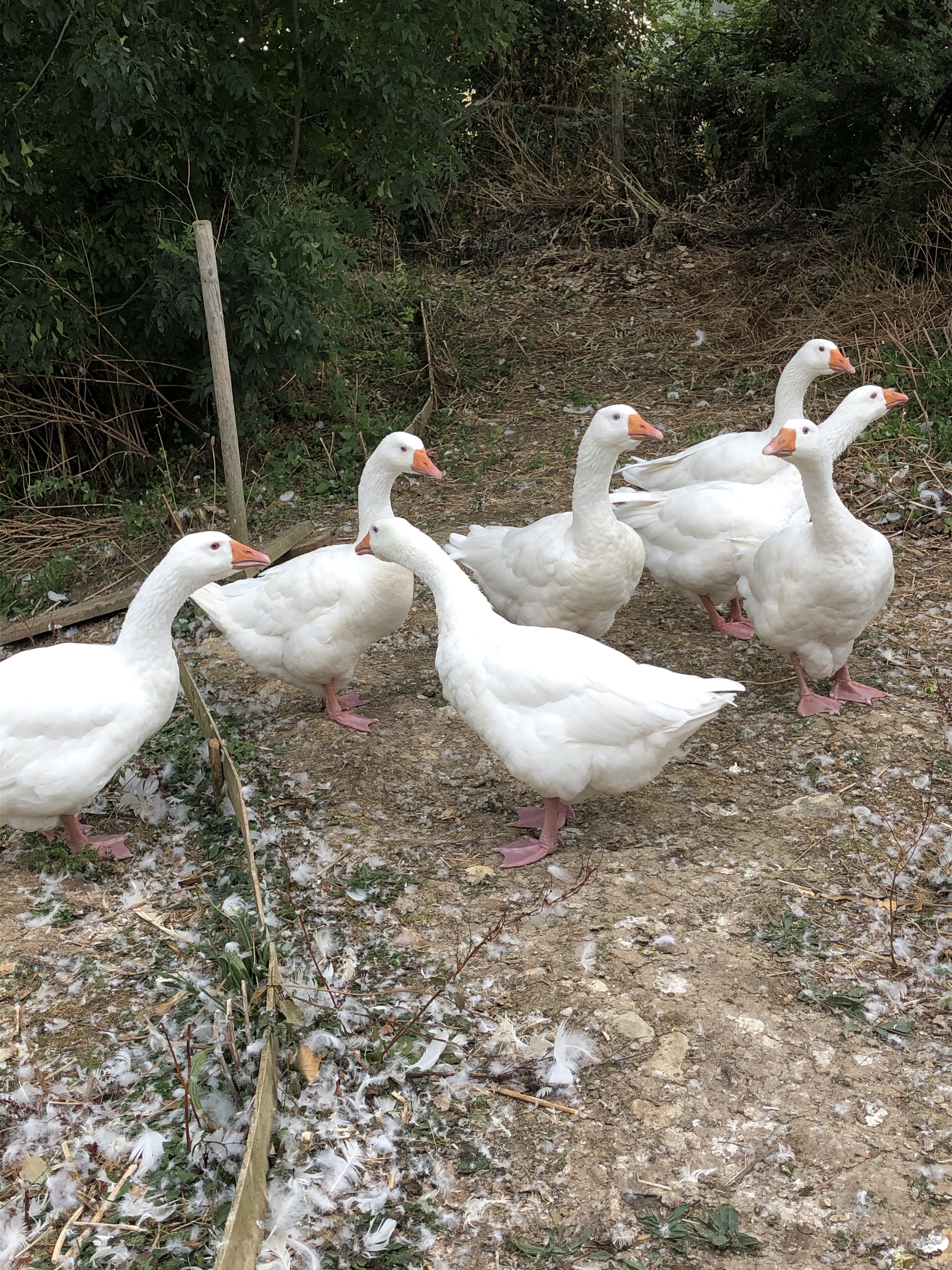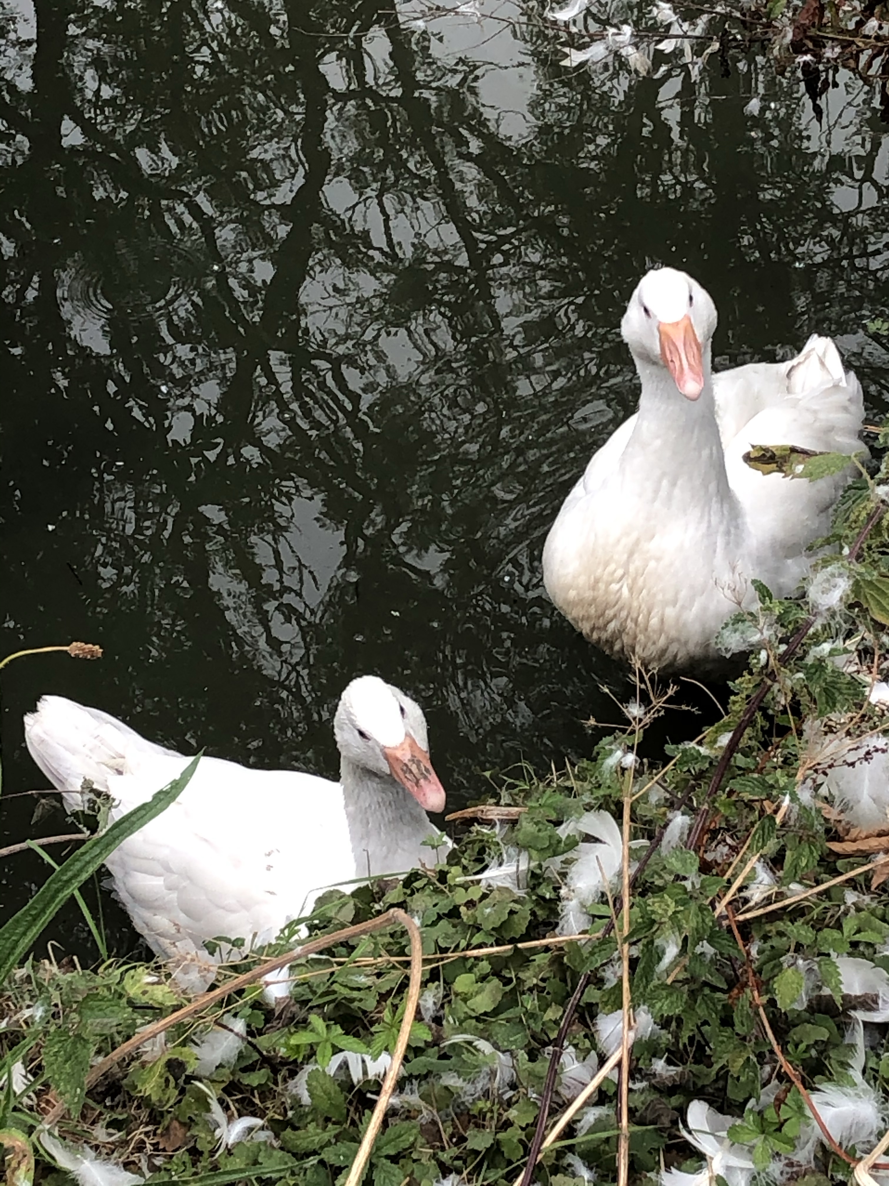 The two nearly grown up goslings remain separate from the flock down at the goose pond. Thankfully they have each other – the two versus the seven. I do hope that they will all be friends soon.