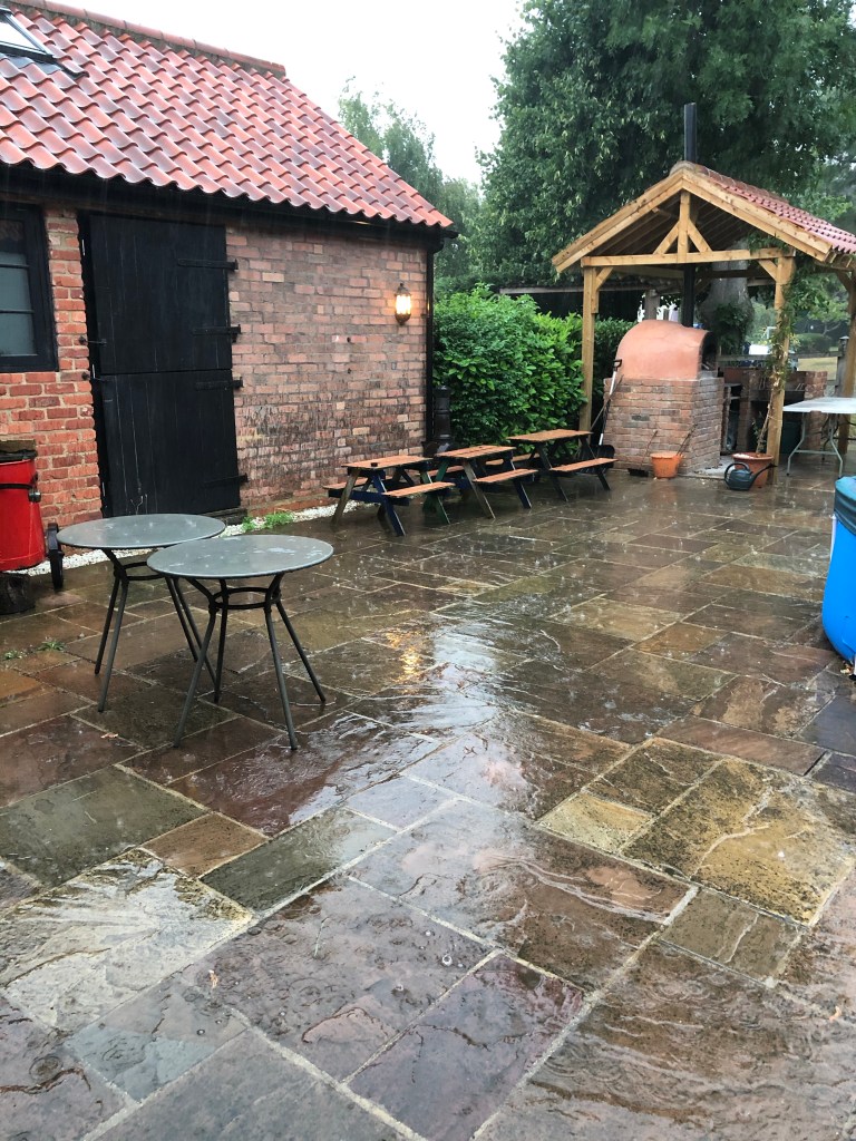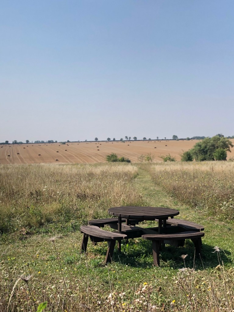 The fields have been harvested and the bales of straw stand ready to be collected