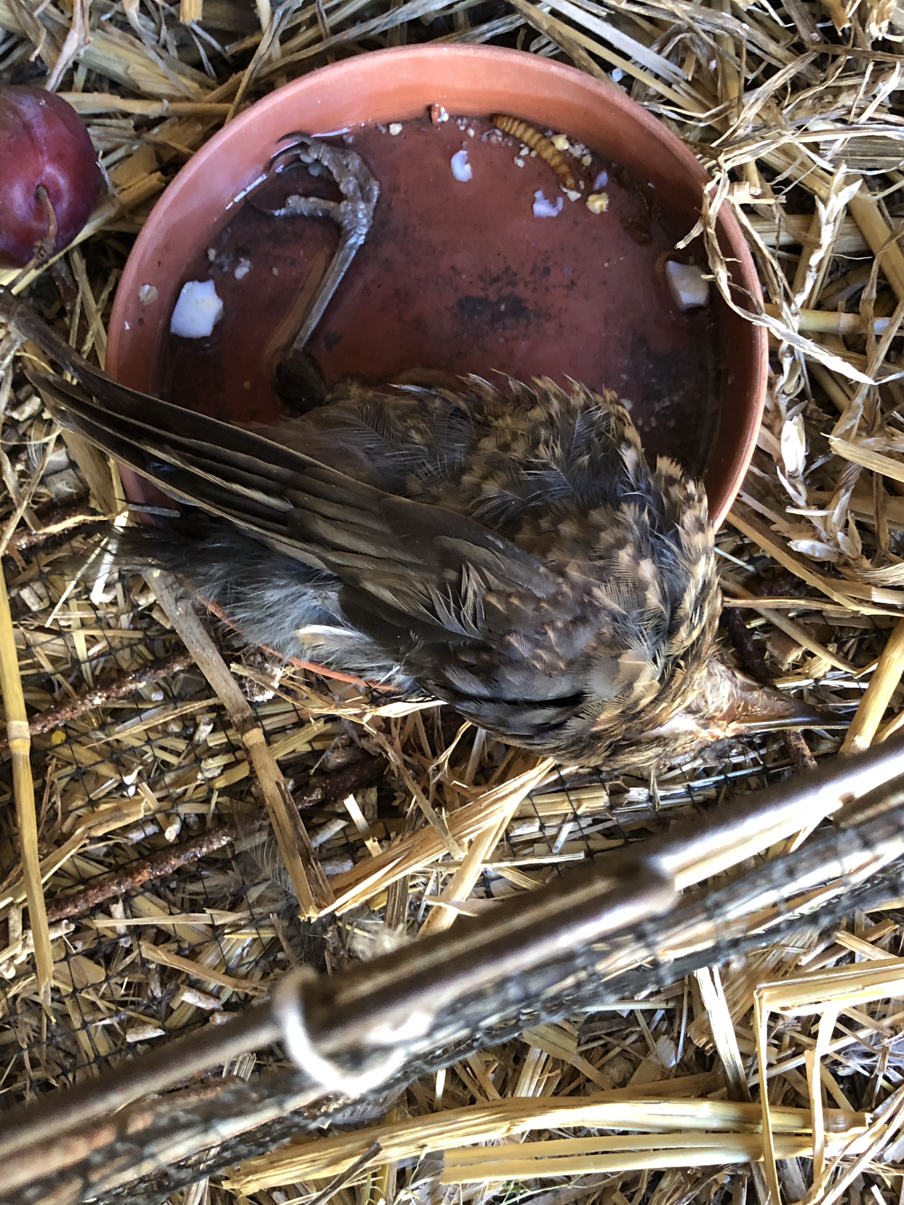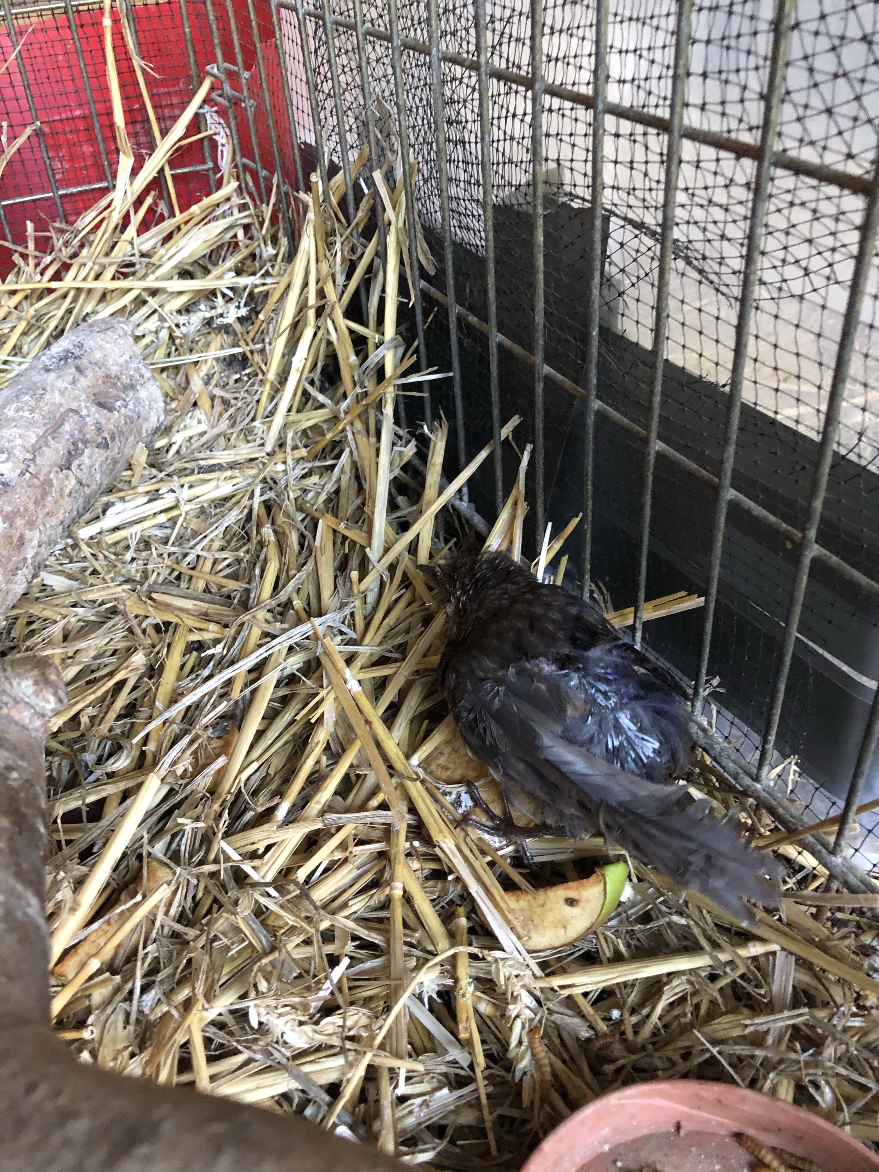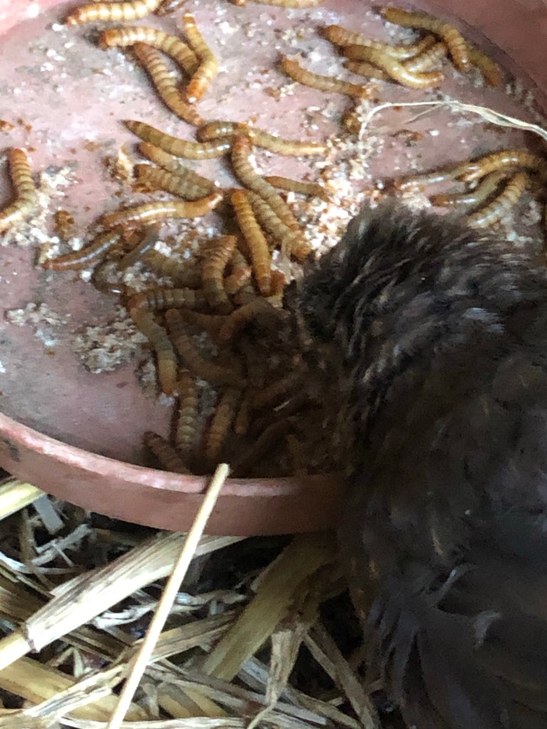 The little blackbird is not thriving yet still alive. Last night I used tweezers to pick up mealworms and dangle them over her beak. She opened but could not hang onto the food. Tiny pieces of egg were slightly better but not enough to sustain her. I’ve just spent another 15 minutes trying but without any success. She’s so docile and soft and I will be sad to lose her.