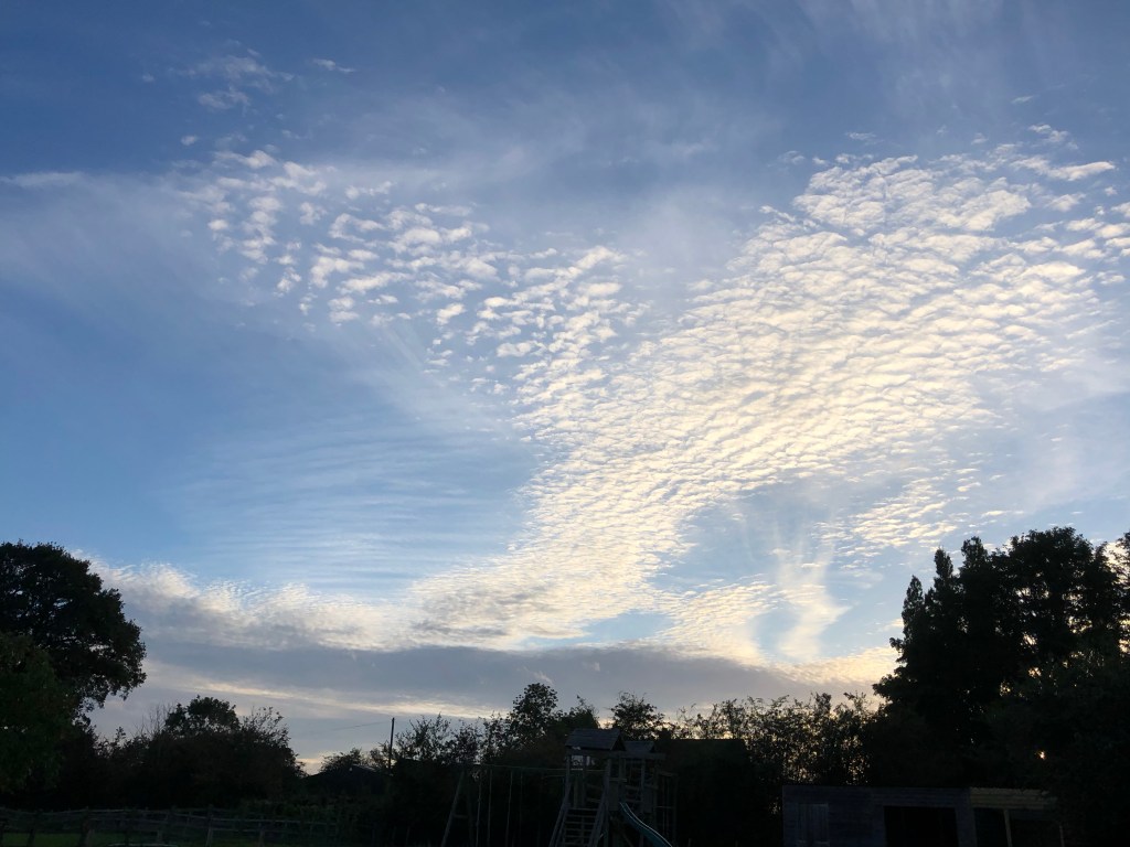 The first and last are, I am pretty sure, plane condensation trails. Middle one is lovely but can’t remember its name – is it cirrus! Reply