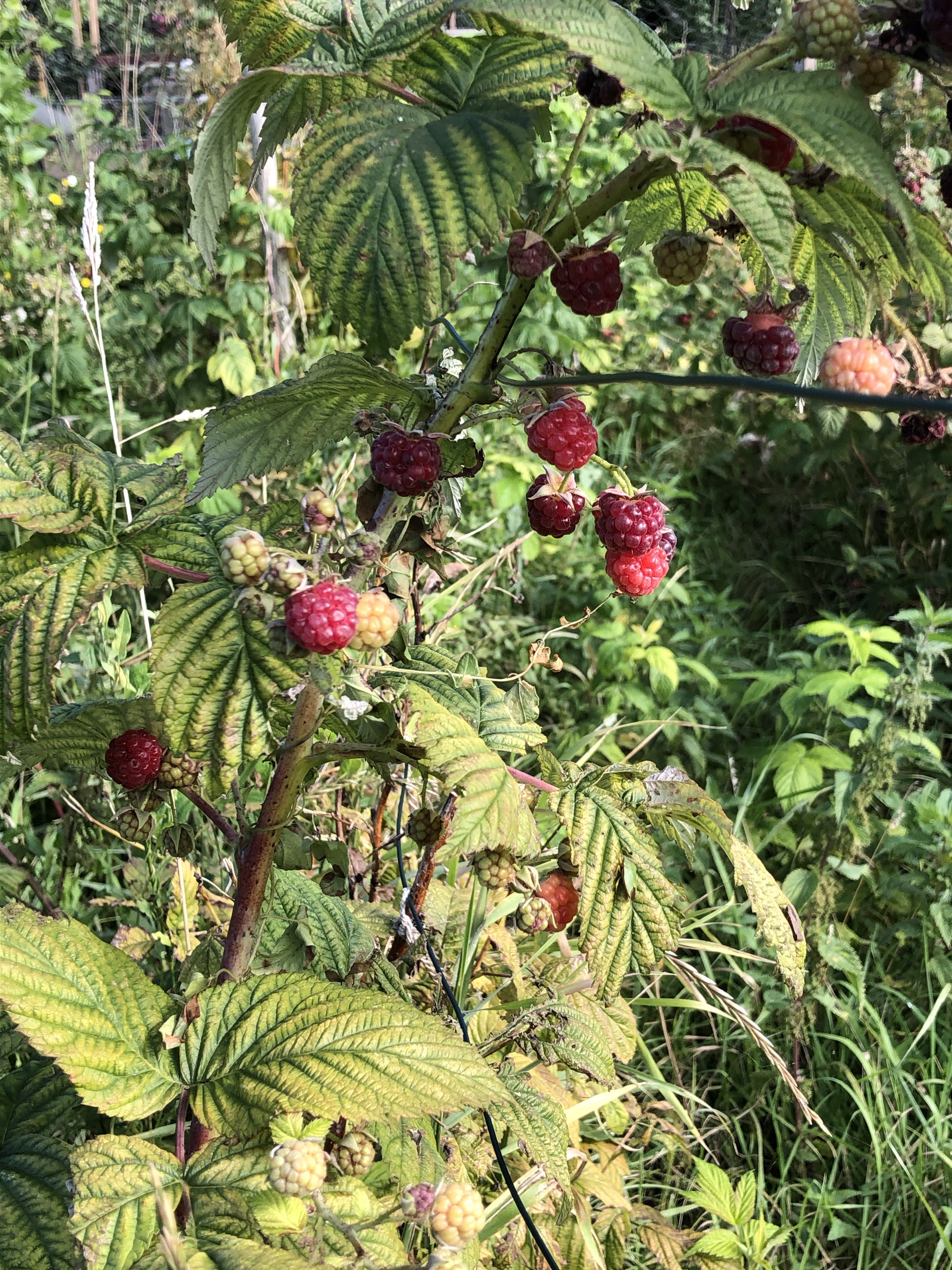 There is a sprinkling of autumn fruiting raspberries. Smaller than the summer crop but a treat to pick and eat as we walk to and from the squash patch