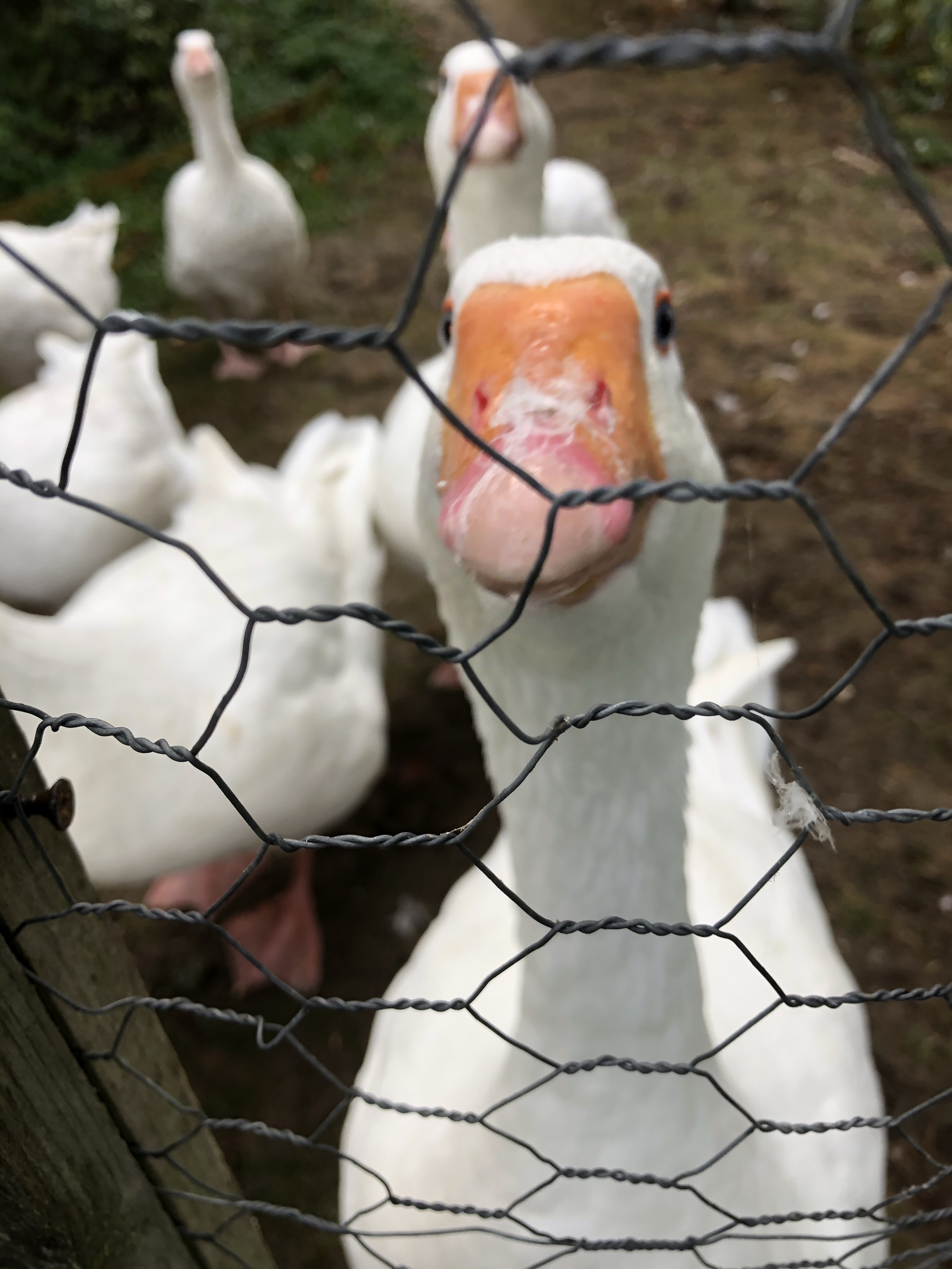 The geese gather at the pond gate to receive their growers pellets (suitable for ducks and geese and young chickens). They are such beautiful creatures in spite of their noise – which is mostly bluff and bluster.