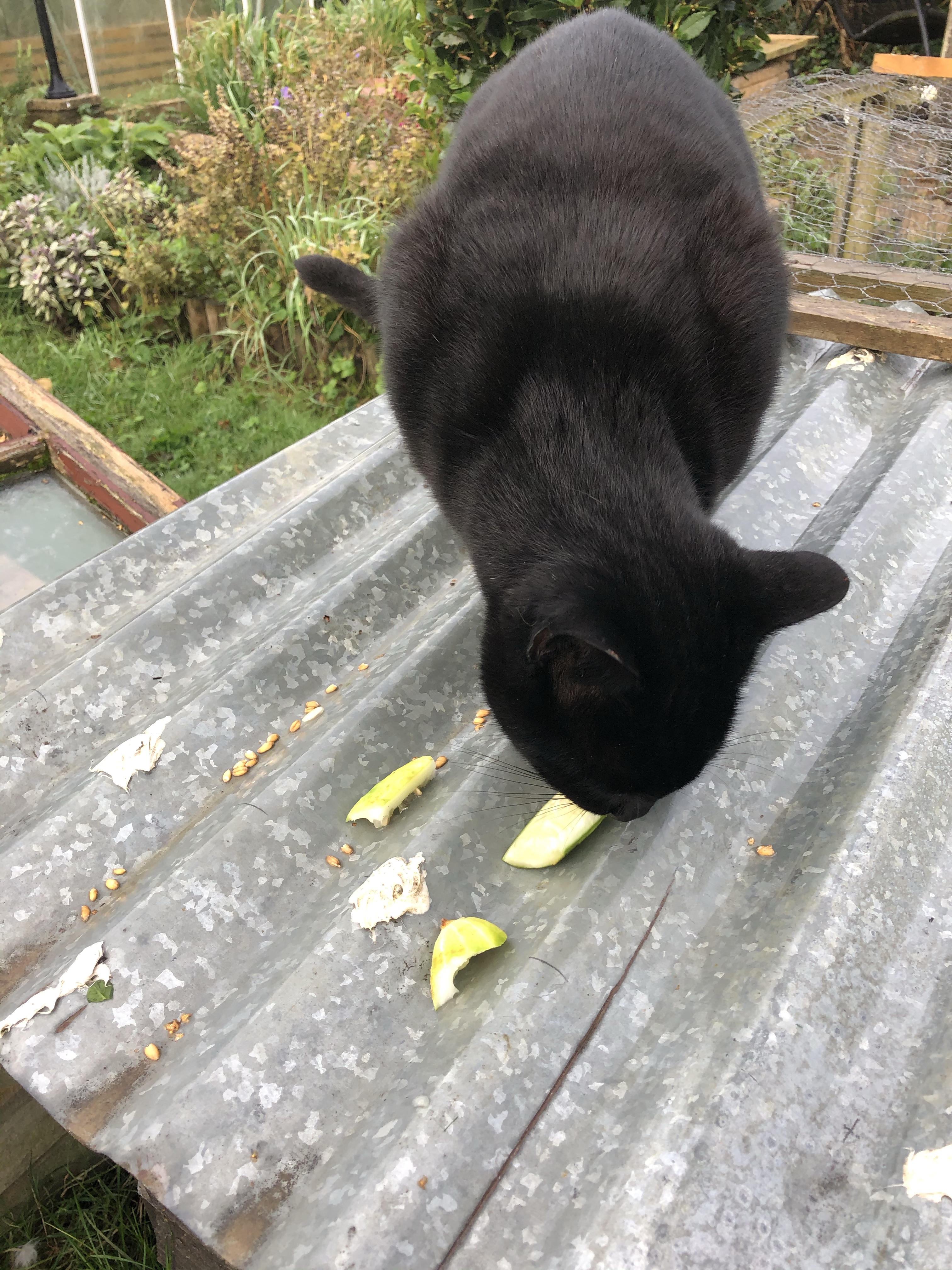 September 30, 2020 by gfreedman2013 Cucumber cat and all the colours of the rainbow Nigel loves cucumber So do the chickens Often mistaken by guests as rhubarb it’s actually rainbow chard – self seeded and overwintering and delicious cooked or in salads Share this: Share on X (Opens in new window) X Share on Facebook (Opens in new window) Facebook Like Loading... Related
