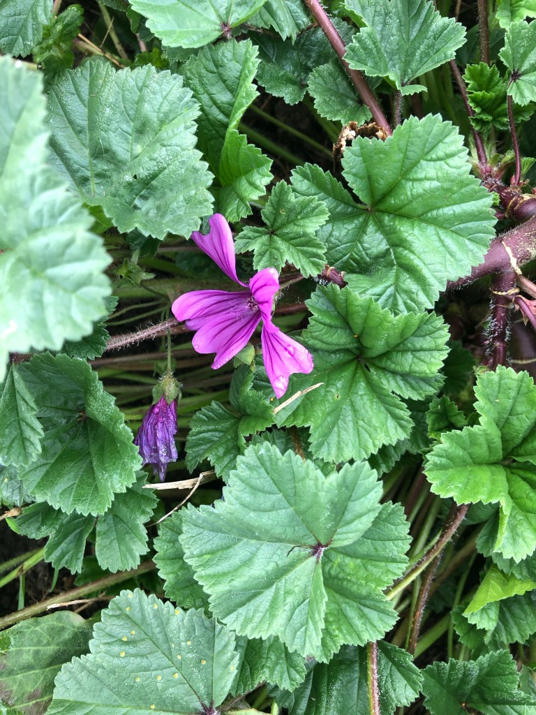 We were talking so much that we walked past the footpath we needed to take and had to retrace our stepsAs we walked back to the village the vivid purple flower of the common mallow caught my eye. Common but extremely regal