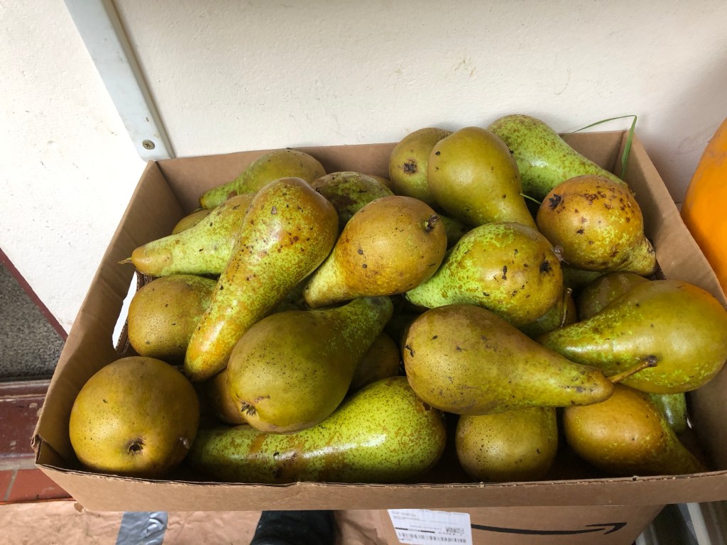 October 6, 2020 by gfreedman2013 Pears for breakfast, lunch and supper Delicious Conference pears. They must be picked before they fall from the tree Share this: Share on X (Opens in new window) X Share on Facebook (Opens in new window) Facebook Like Loading... Related