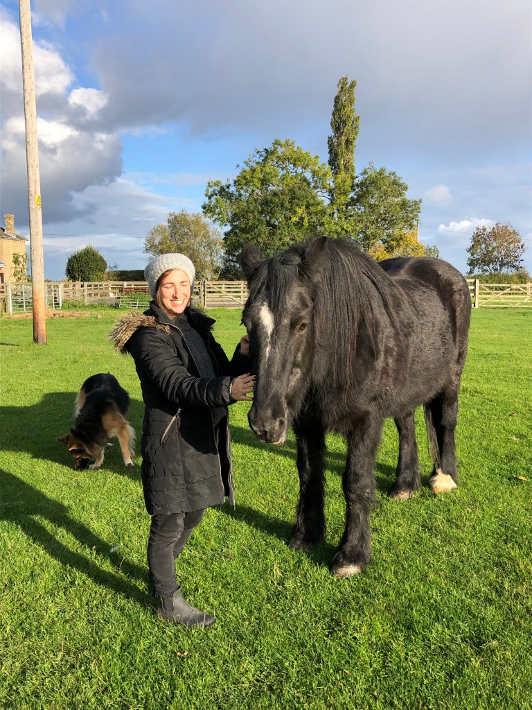 The visitors accompanied me on a short, afternoon stroll. We admired Minnie, the Dale Pony and the girls were invited to meet her by her owner