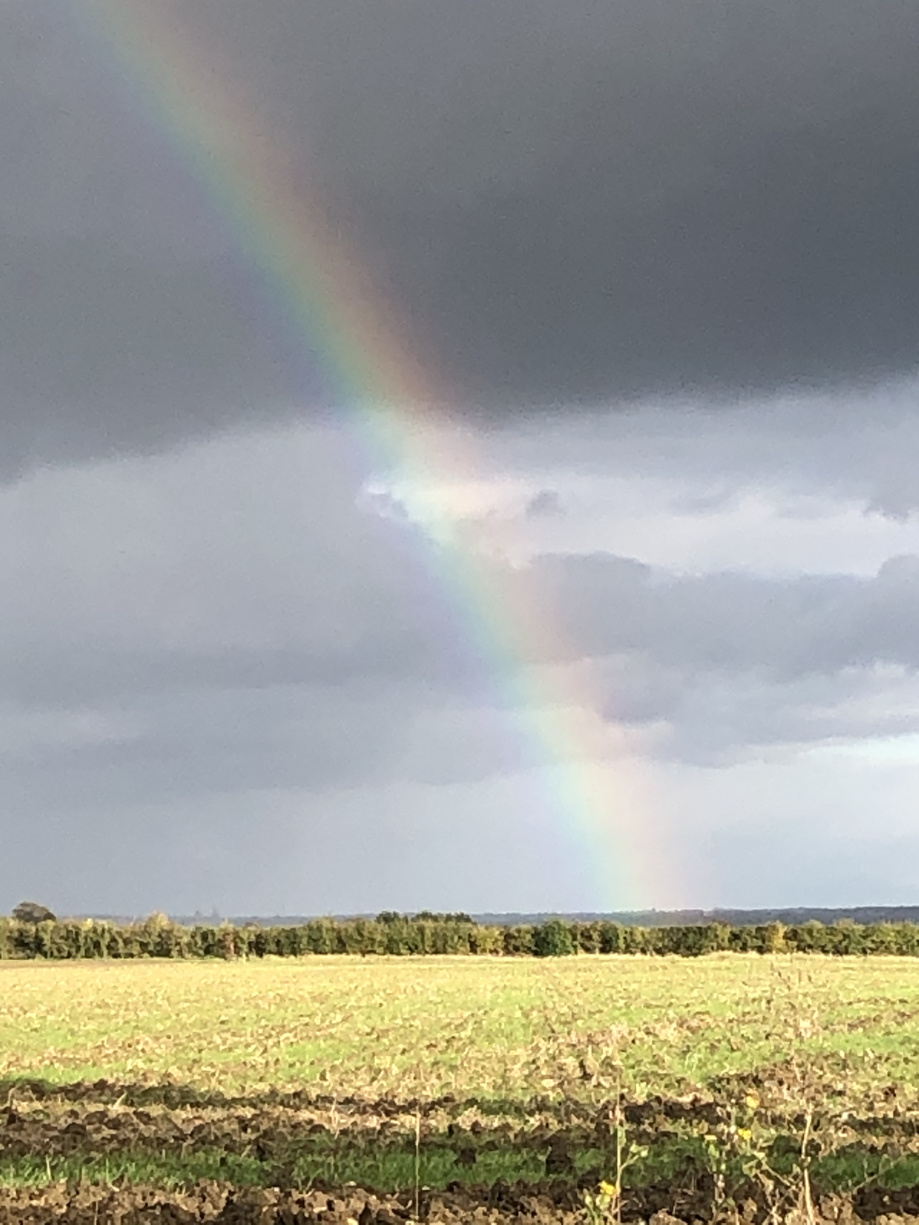 On the way home the sun was shining and it started to rain and a bow appeared in the sky