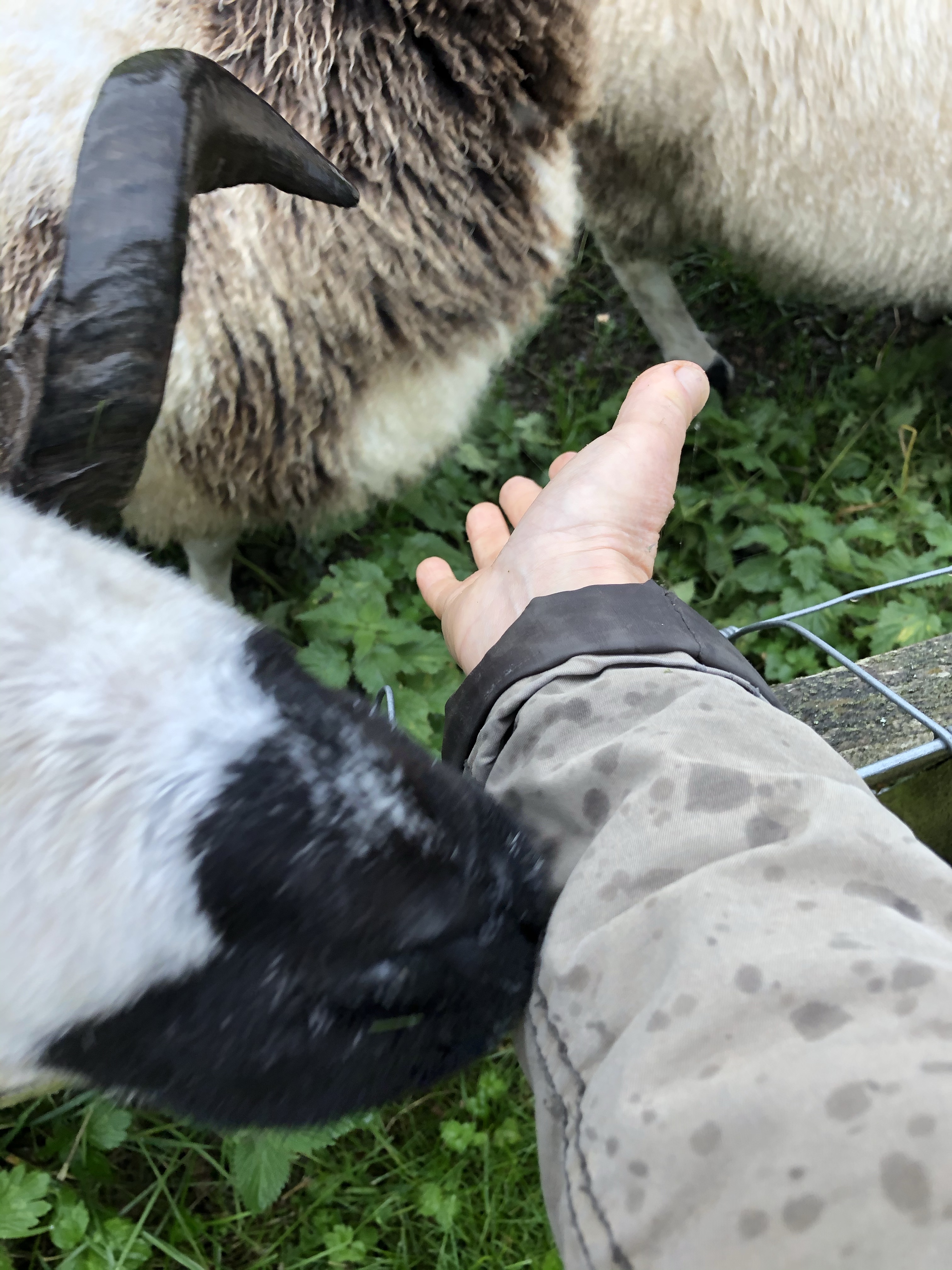 October 21, 2020 by gfreedman2013 Hand fed sheep Not every sheep, but quite a few, eat from my hand. Their muzzles are soft and I adore these animals. In the front stands Cummings. Behind heron the right of the photo is pinky and next to her is Little Miss Pretty Share this: Share on X (Opens in new window) X Share on Facebook (Opens in new window) Facebook Like Loading... Related