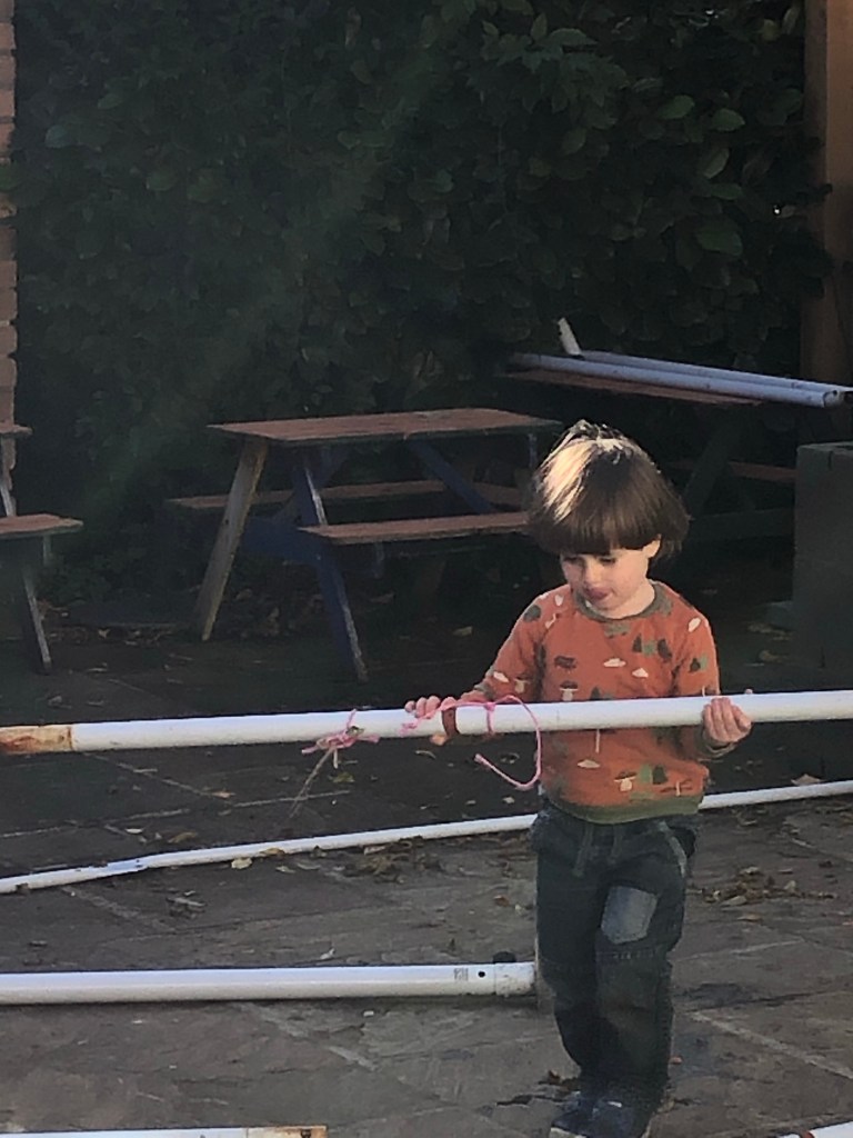 October 25, 2020 by gfreedman2013 Four gone, three arrived 3Grandson helps his dad and grandpa take down the Succah Granddaughter and grandma do a puzzle in the barn whilst the men work outside Share this: Share on X (Opens in new window) X Share on Facebook (Opens in new window) Facebook Like Loading... Related