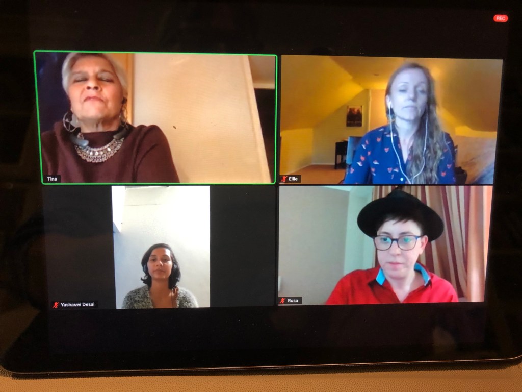 Sitting in front of the fire eating ribollita and soda bread and watching daughter on a webinar. They are talking about the film Brave Girls dealing with arranged marriage and female education in a rural Muslim Indian community.