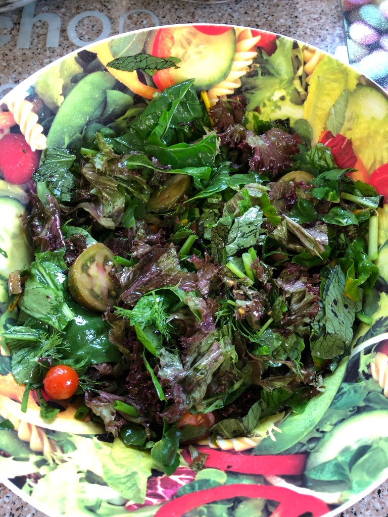 Salad leaves and a few tomatoes from the poly tunnel will remind us of sunny days
