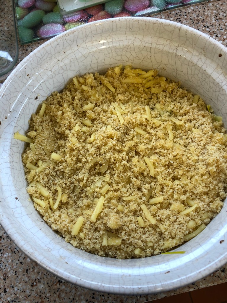 A leek bake is ready to go into the oven later