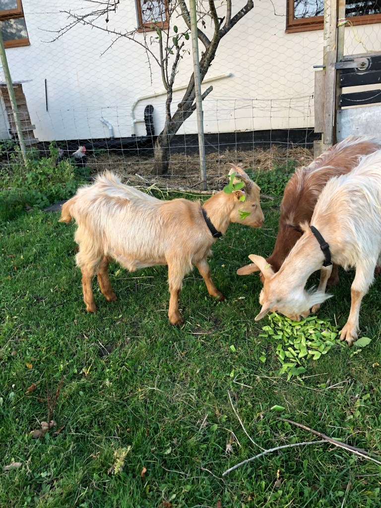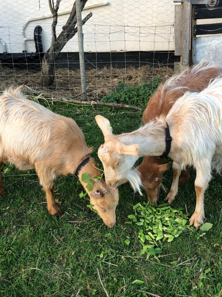 November 2, 2020 by gfreedman2013 Runner beans in November. We will eat the smaller, tender beans this evening and I cut up the larger, tougher beans for the goats Meghan ended up with a pretty crown of runner bean leaves. Then Willow spotted them and ate them. Share this: Share on X (Opens in new window) X Share on Facebook (Opens in new window) Facebook Like Loading... Related