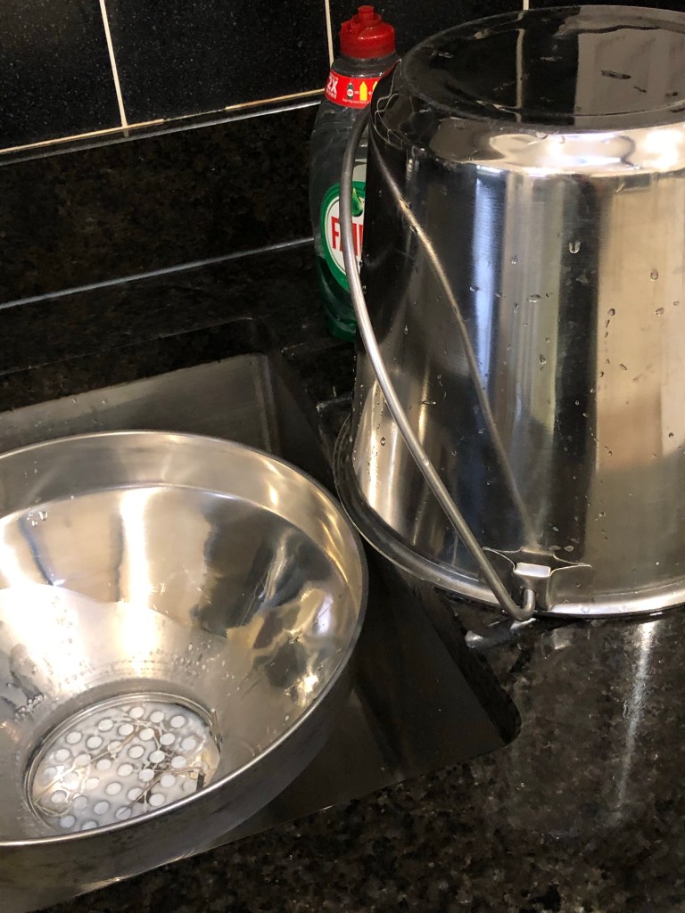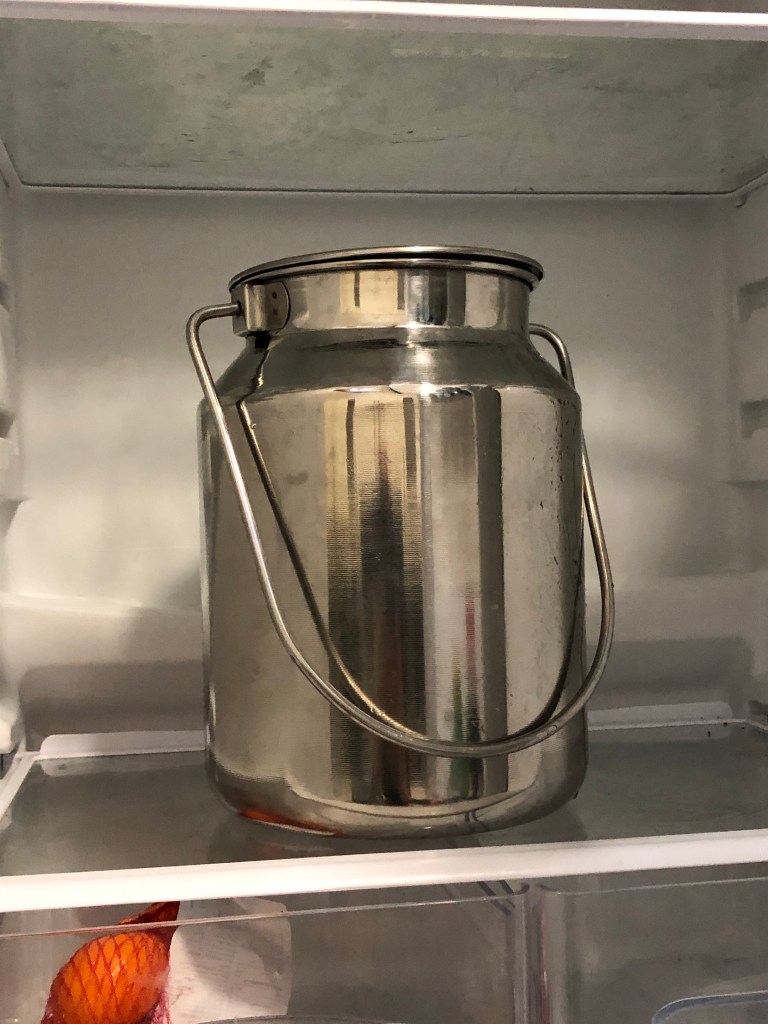 Then brush the goat, wipe her udder, squeeze some milk into a cup to check for any impurities and then begin to milk into the pail. It’s relaxing, it can’t be rushed and sometimes Willow has to put up with me singing to her. In all fairness Jeremy milks four out of five days and seems to get a higher yield. I strain the milk each day and make halloumi twice a week.