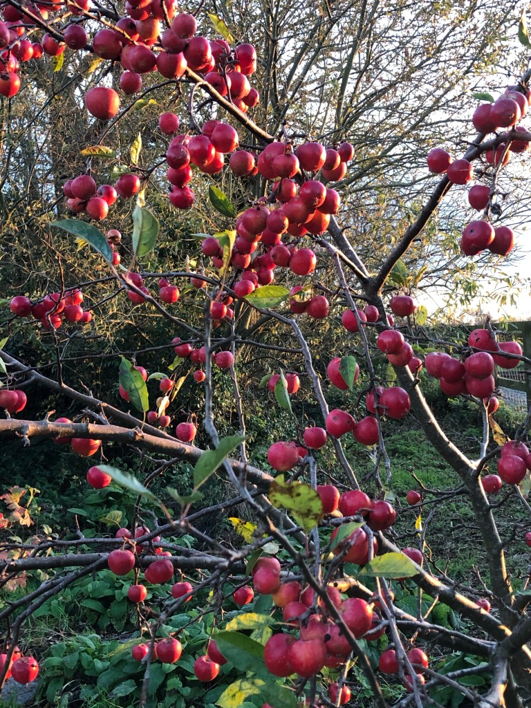 I stopped to chat at a friend – outside in her yard, of course. Her views are different to ours and equally stunning She has a magnificent crab apple tree out front. The apples look so tempting but are only really edible as crab apple jelly.This is an experiment- taking an iPhone picture through my prescription sunglasses. I like the colours