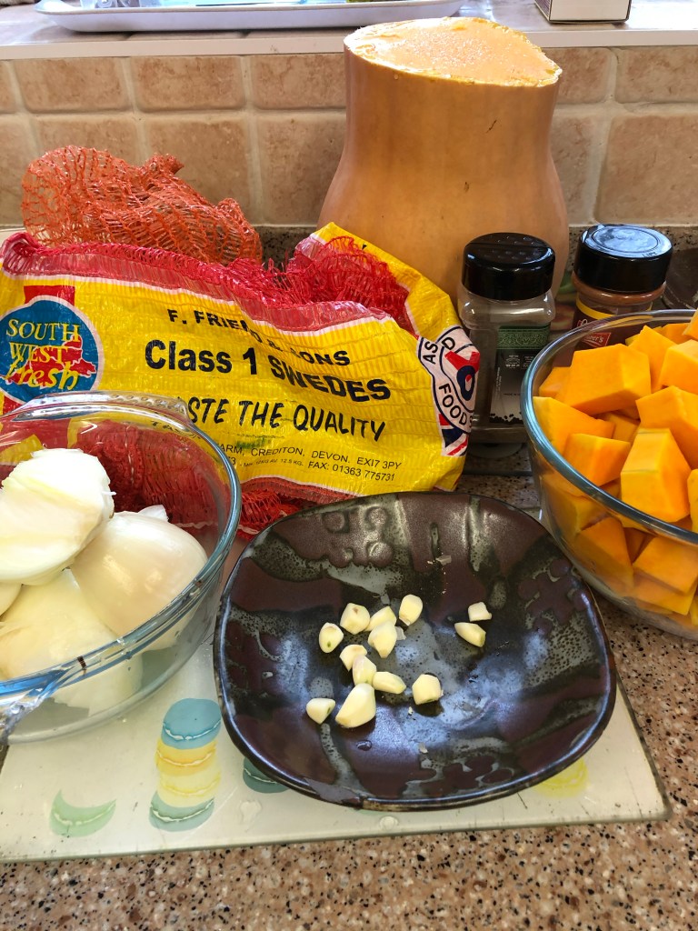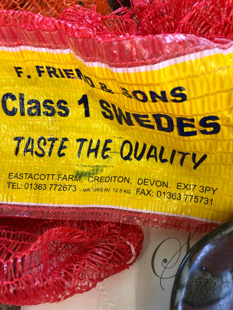 Jeremy noticed that the bag in which we had hung the butternut squash came from a farm in Devon, very close to where we lived on a 2 acre small holding over forty years ago.