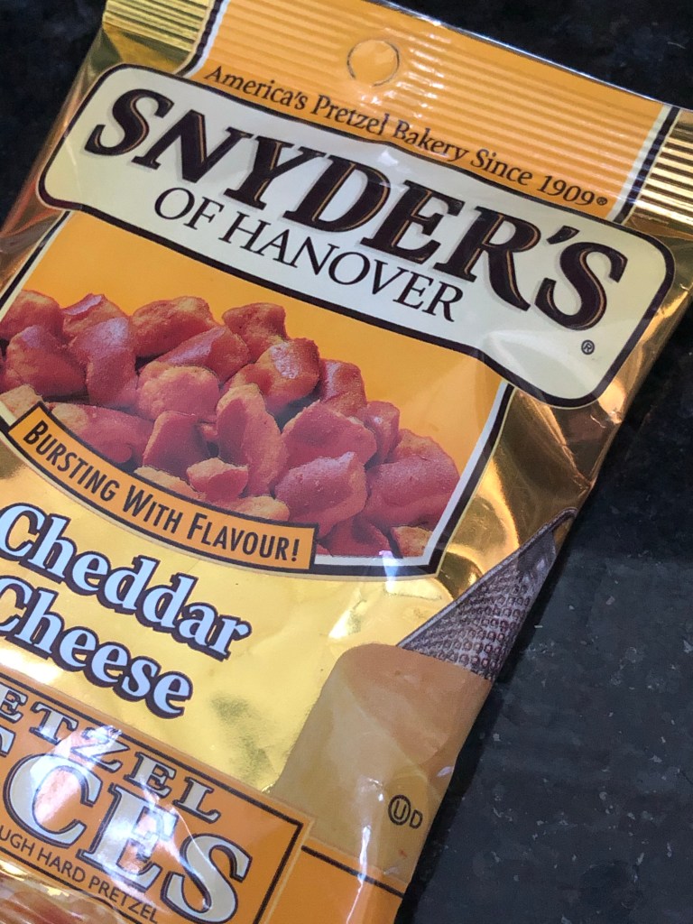 Then it was a doorstep delivery to daughter of an Arsenal video swopped with a book, Hillbilly Elegy, and a hadassah plant (left for us at Daughter’s home by a London friend). Back on the road and a quick pit stop for petrol at Apple Green service station where, for some unknown reason, they sell my favourite Snyder snacks