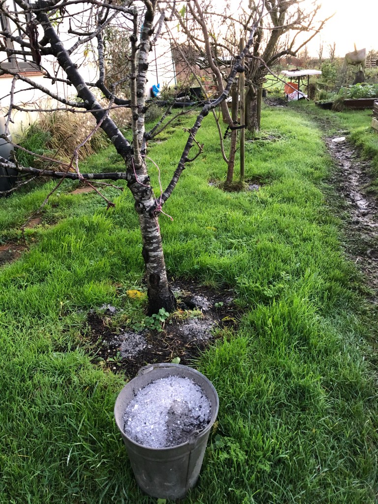 At The Gables we try to reuse and recycle as much as we can. All vegetable peelings and left over food goes into compost bins. The ash from the wood burner is collected in a bucket and spread around the fruit trees and this was done early this morning.