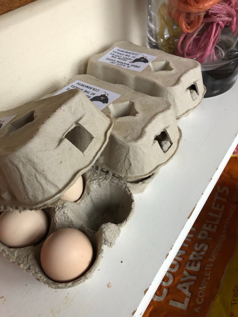 January 2, 2021 by gfreedman2013 So many eggs, no visitors – sign of the times. We give them to anyone who turns up – the guys who delivered a washing machine, anyone working here, neighbours. Come and get ‘em when you can I made a red and white onion quiche which used six eggs (tasted good too!) Share this: Share on X (Opens in new window) X Share on Facebook (Opens in new window) Facebook Like Loading... Related