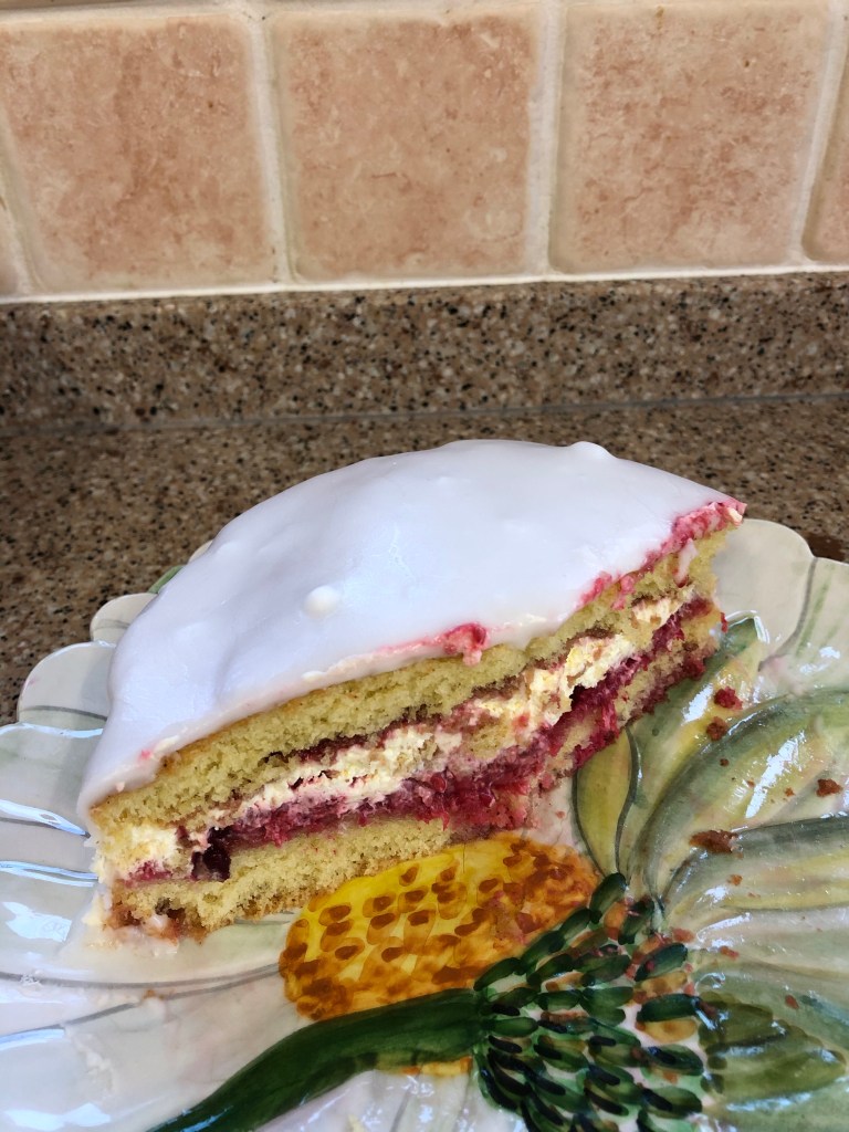 We always have a lunch of oven cooked Gables chips and tomato ketchup (which I call sauce!) and some cucumber. This week it was followed by yet another cake to belatedly celebrate grandpa’s birthday, again. Any excuse for cake! Not much left.