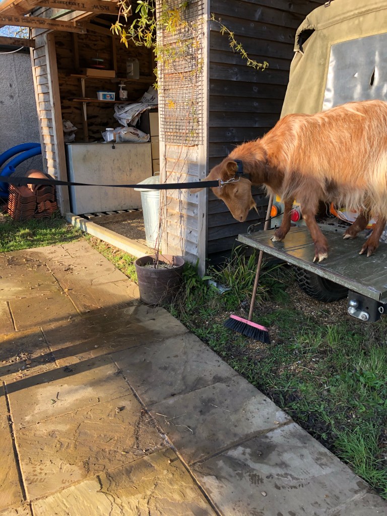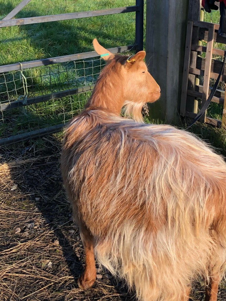 Characterised by bleating and lifting up her tail and being generally agitated. There is just a 12 hour window to capitalise on this so we made contact with local goalkeepers and took Wisp over to meet their Billy Goat at midday.