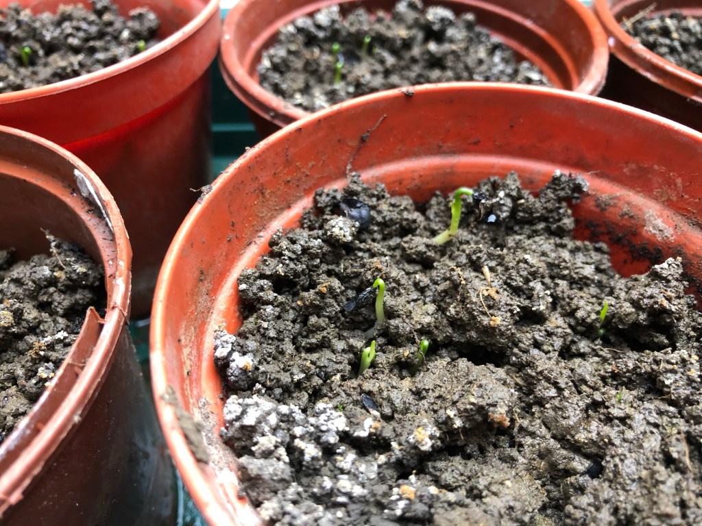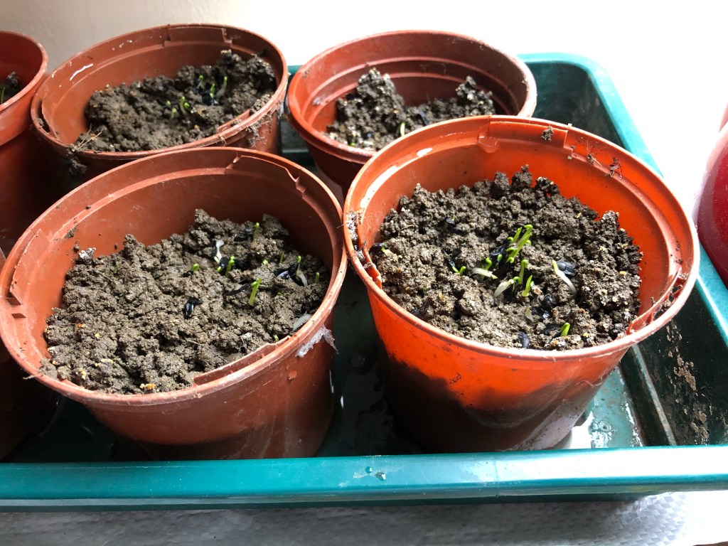 Our agapanthus plants )that we brought here from London) have done well and been divided and replanted regularly. This year I gathered quite a few black seeds at the end of the flowering and dropped them into pots of mole earth. I brought to an indoor, upstairs windowsill