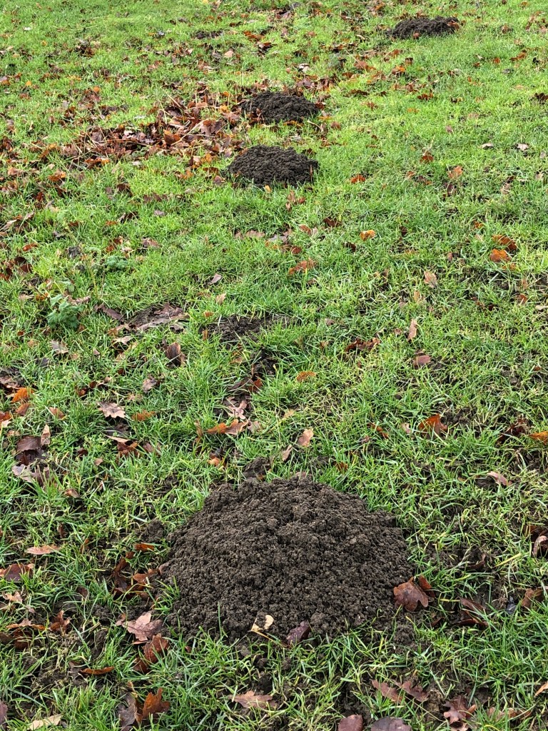 The solitary moles live (in their millions) beneath ground digging up to 20 metres of tunnels each day. Their digging helps to aerate the soil although their molehills can annoy gardeners and even farmers. They feed on earthworms and only look for a mate during the months of February through to May. The gestation period is six weeks and the pups leave the underground nest about 6 weeks after birth. It’s a solitary, underground existence with average life expectancy of 3 years. Occasionally we spot moles above ground but then they become prey for the cats or buzzards. They are safer staying below with Nigel and Mabel on the prowl!