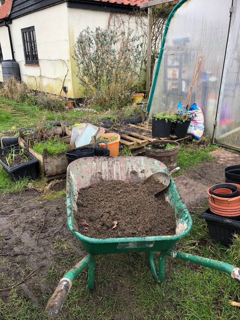 On a dry day I fill a wheelbarrow and then shovel the mole-sifted earth into storage bags