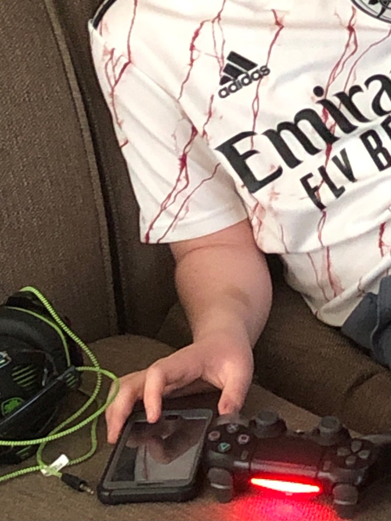 Luckily mum is doing well and we chatted 19 to the dozen. After seeing mum I stopped outside daughter’s house to have a walk with grandson, who is on half term. In the few weeks since I last saw him he has grown and is now the same height as me and he is wearing a bigger shoe size! I’m not allowed to blog his picture and I respect his wishes. This partial photo will have to do – in his new away kit. I’m desperate to have a big hug with the boy but that will have to wait. He misses the small holding and the animals and his grandpa and I miss him.