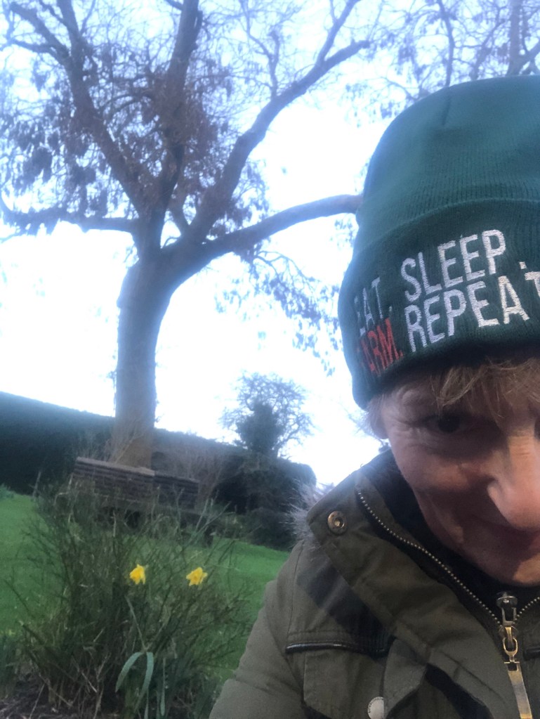 Wear a hat that arrived, by delivery, this afternoon. A gift from a thoughtful friend