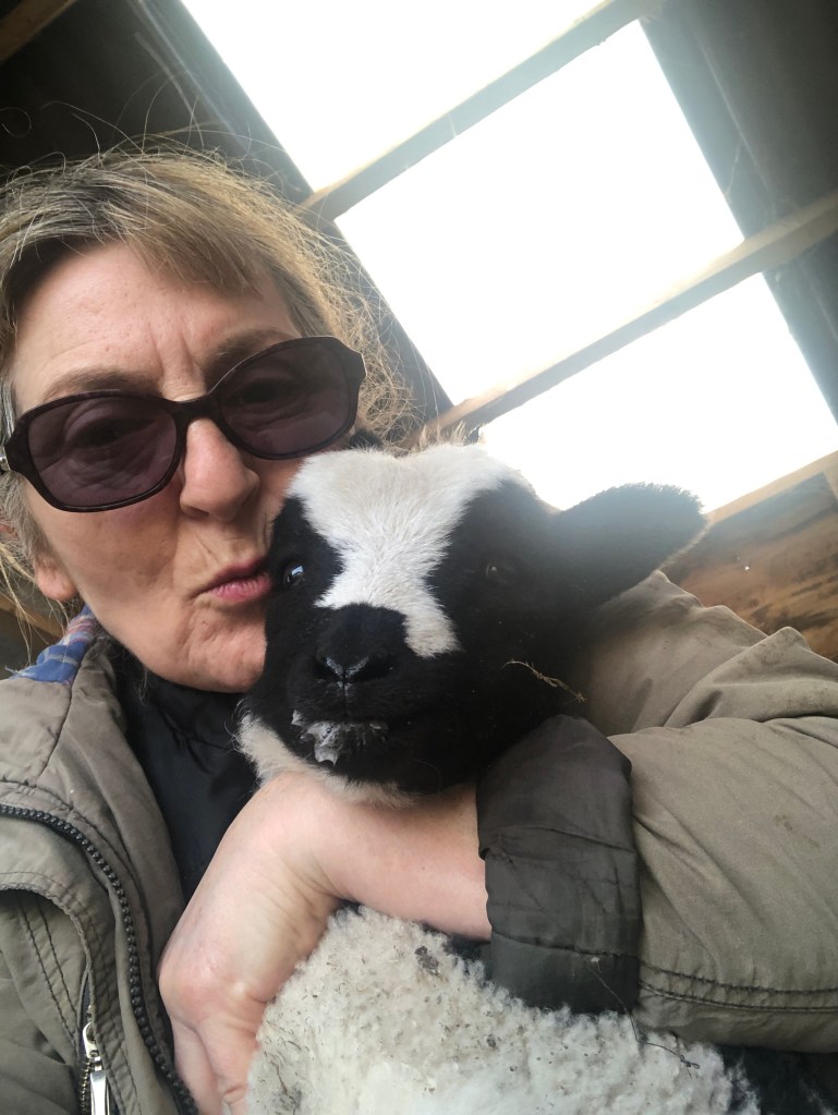 The lambs play in the barn at their peril. The risk is a cuddle and a kiss from J and me
